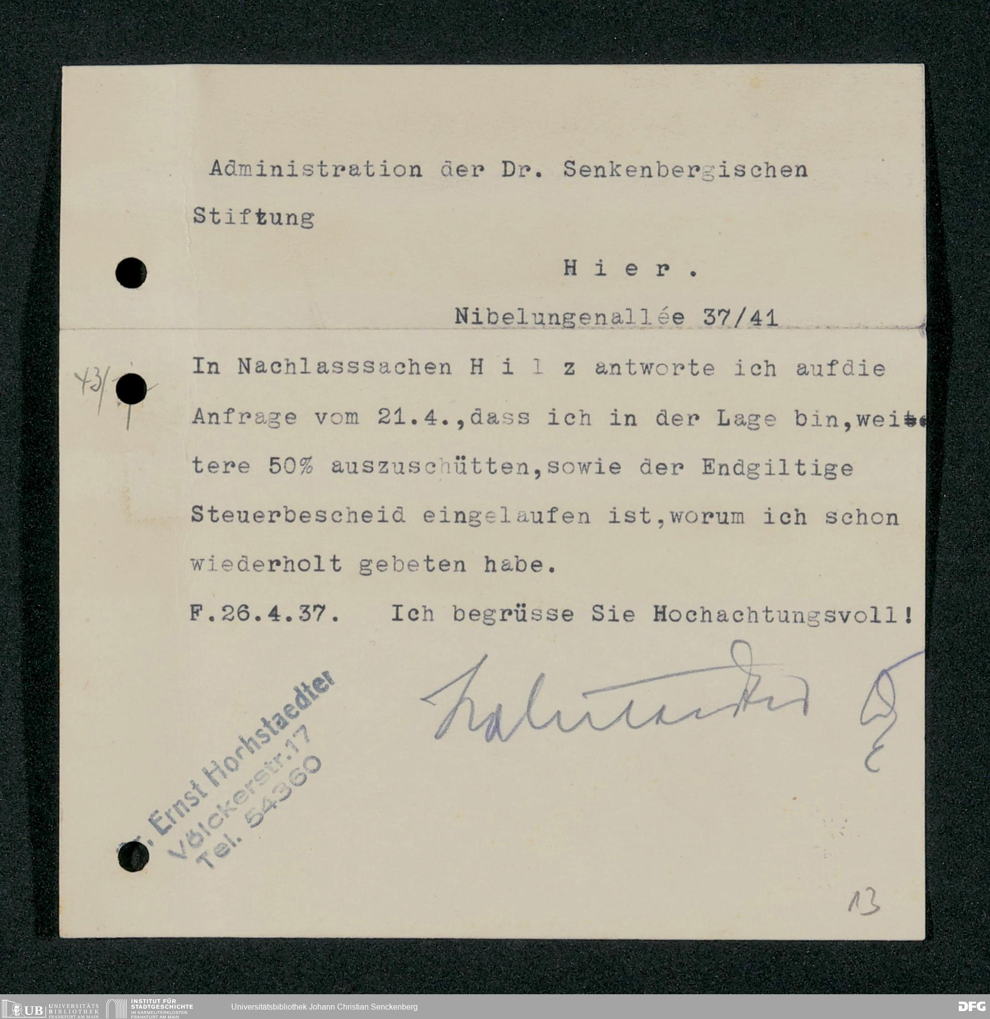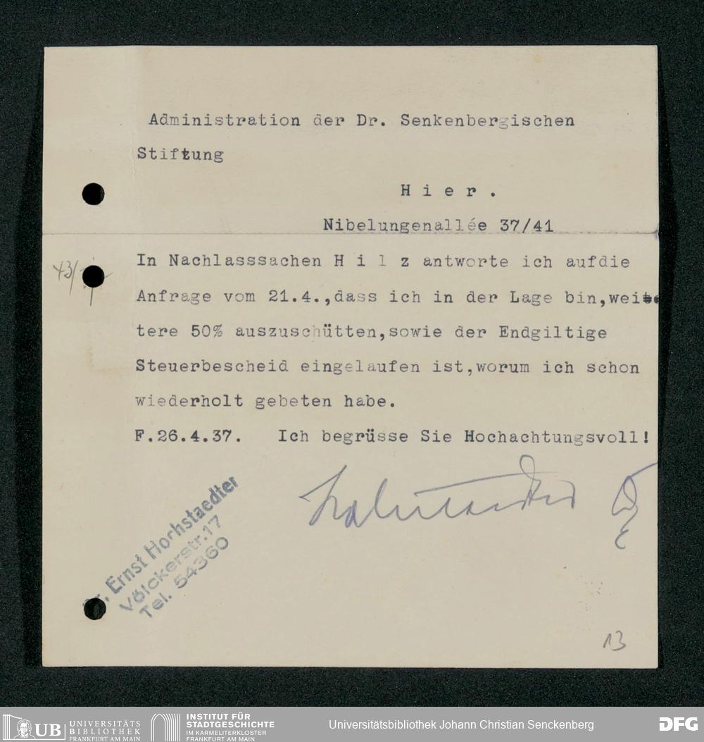 V48 Dr. Senckenbergische Stiftung, 317 - Nachlässe Hilz und Fritsch