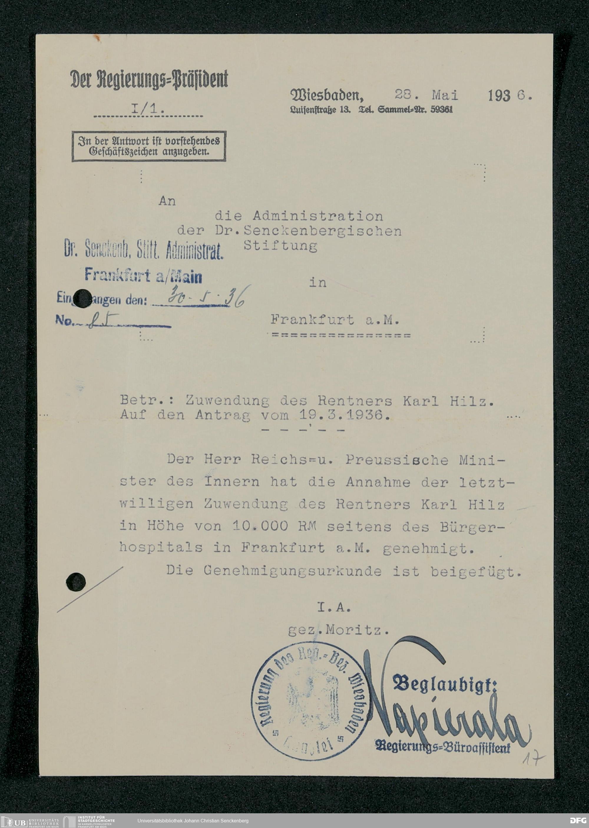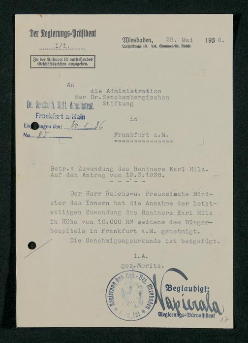 V48 Dr. Senckenbergische Stiftung, 317 - Nachlässe Hilz und Fritsch