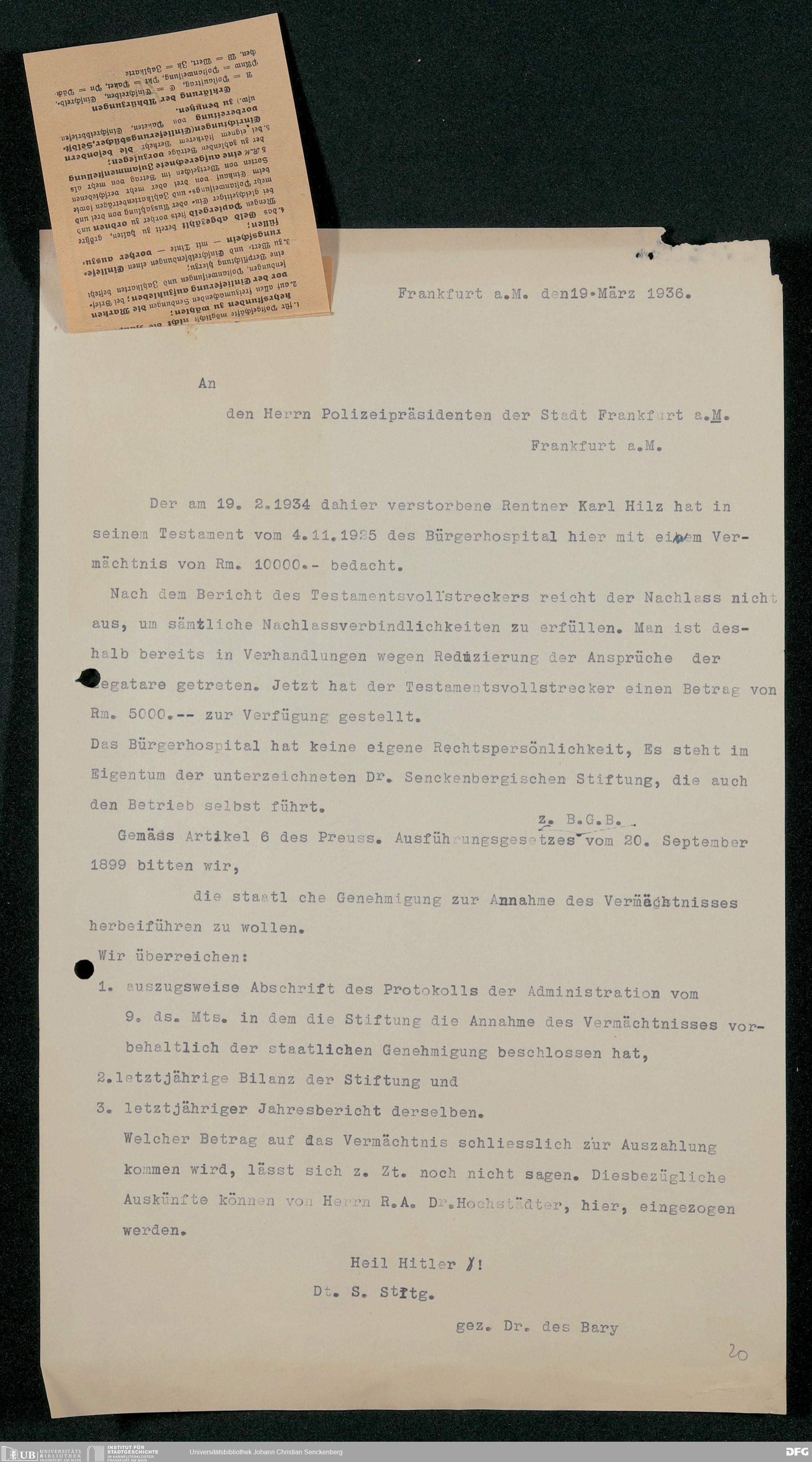 V48 Dr. Senckenbergische Stiftung, 317 - Nachlässe Hilz und Fritsch