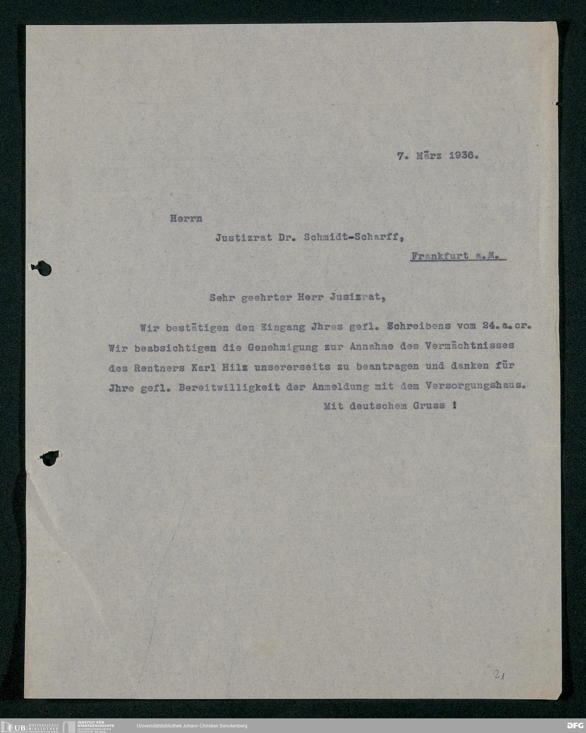 V48 Dr. Senckenbergische Stiftung, 317 - Nachlässe Hilz und Fritsch
