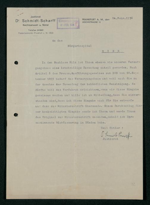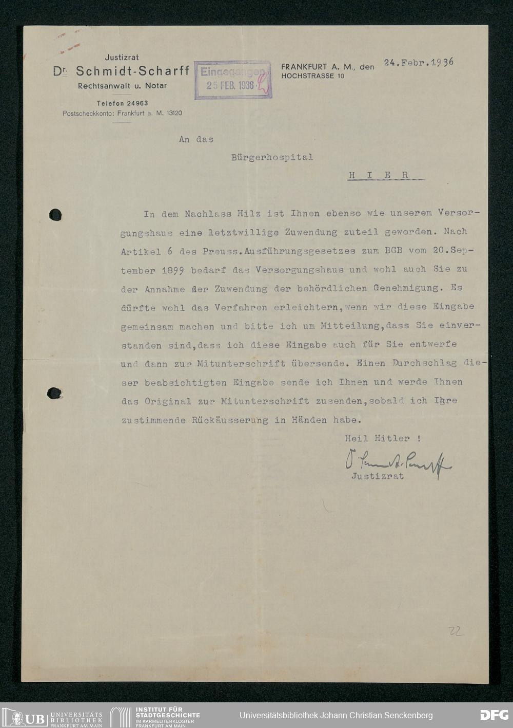 V48 Dr. Senckenbergische Stiftung, 317 - Nachlässe Hilz und Fritsch