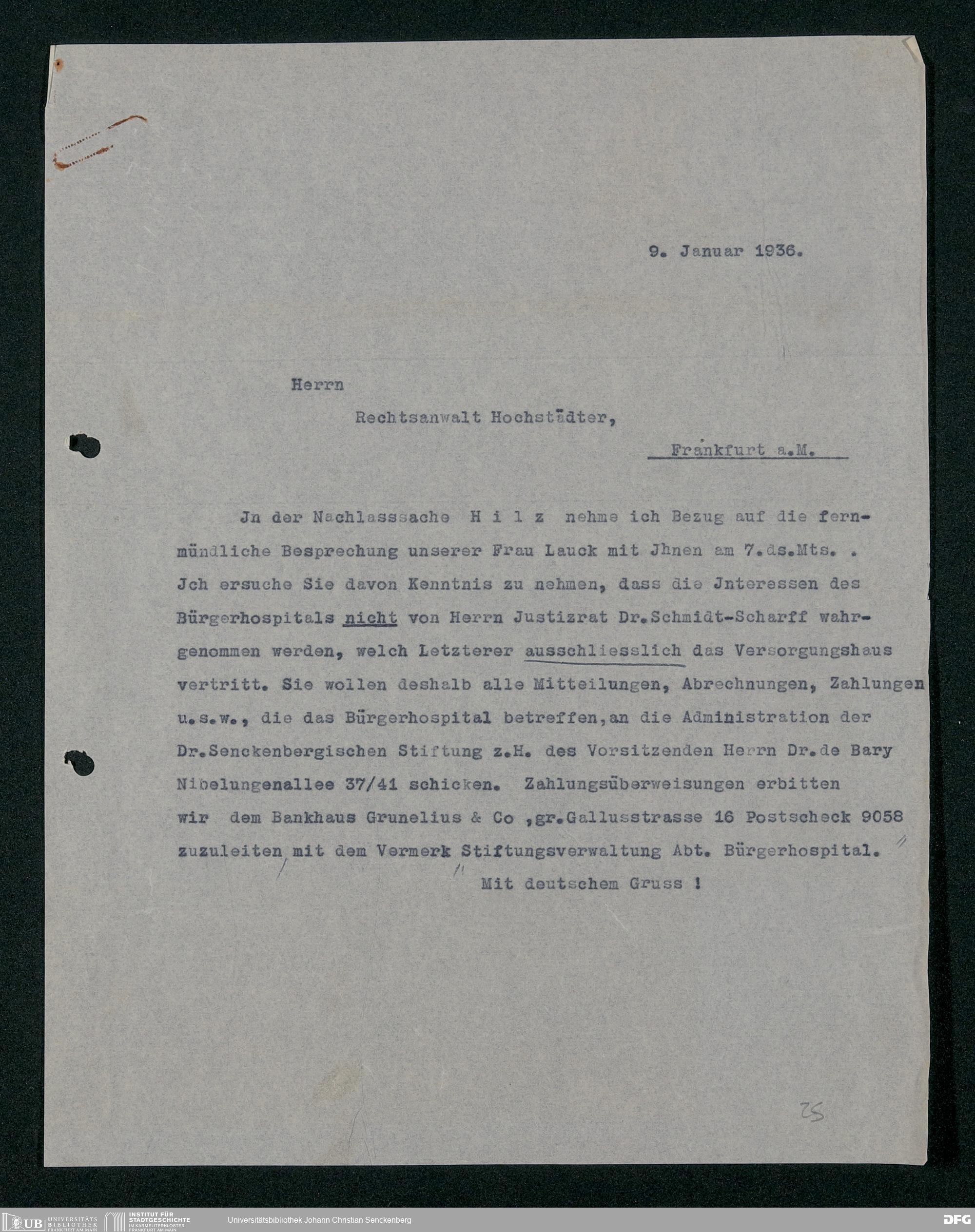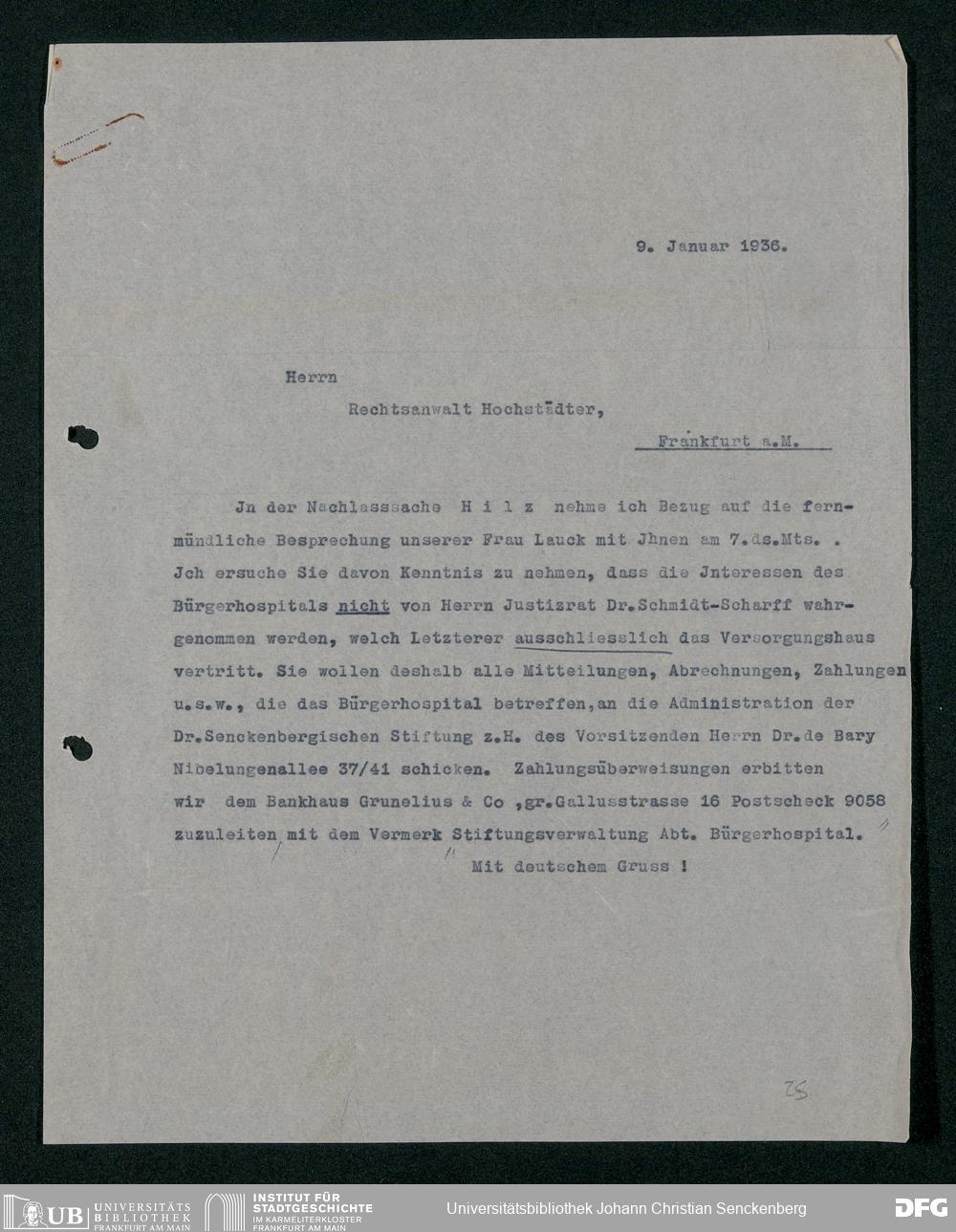 V48 Dr. Senckenbergische Stiftung, 317 - Nachlässe Hilz und Fritsch