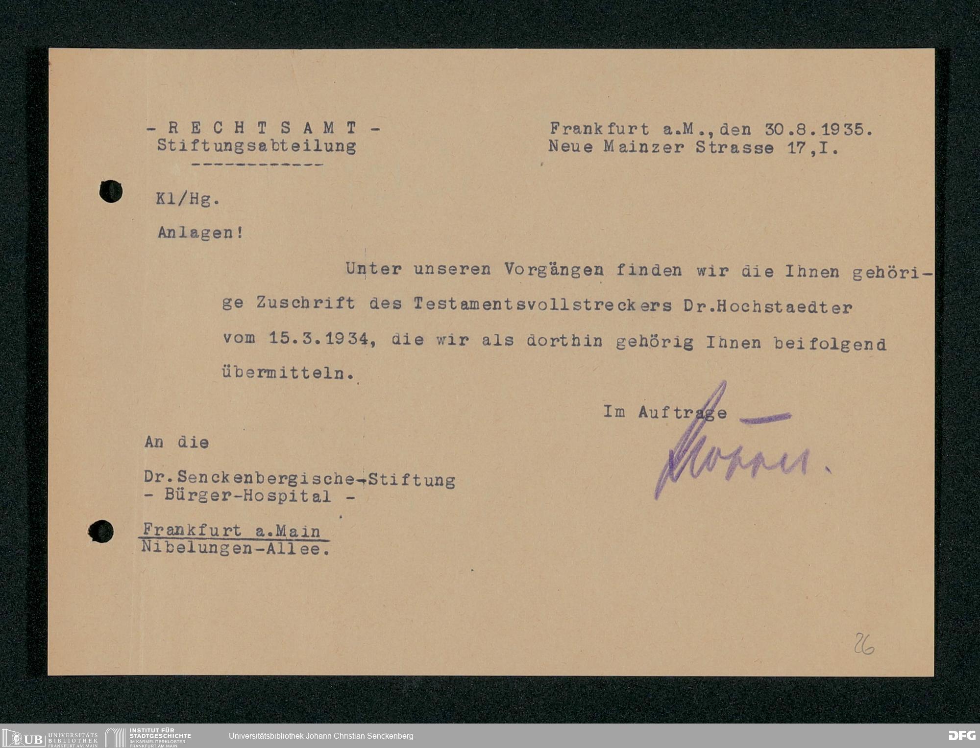 V48 Dr. Senckenbergische Stiftung, 317 - Nachlässe Hilz und Fritsch