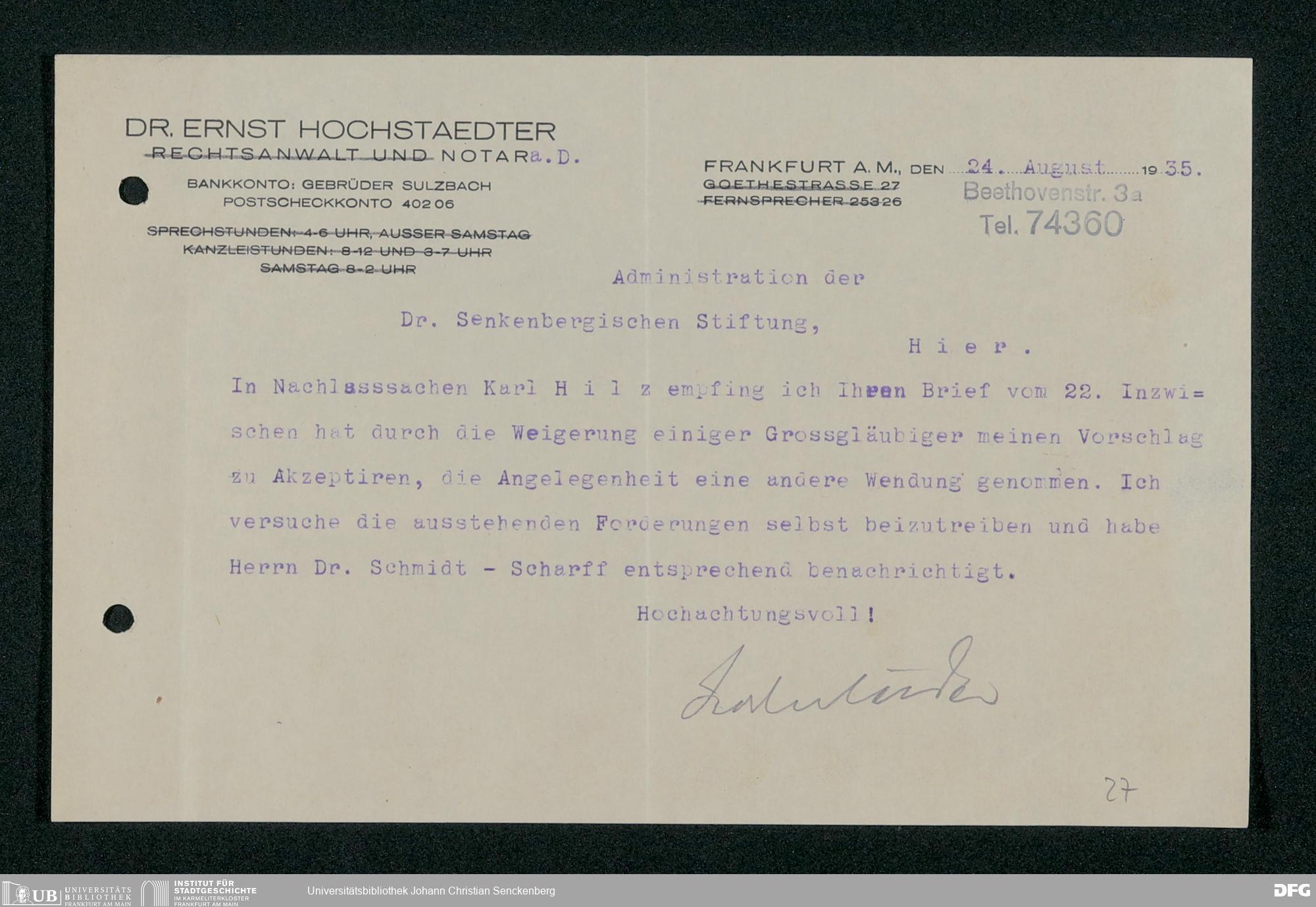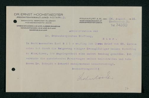 V48 Dr. Senckenbergische Stiftung, 317 - Nachlässe Hilz und Fritsch
