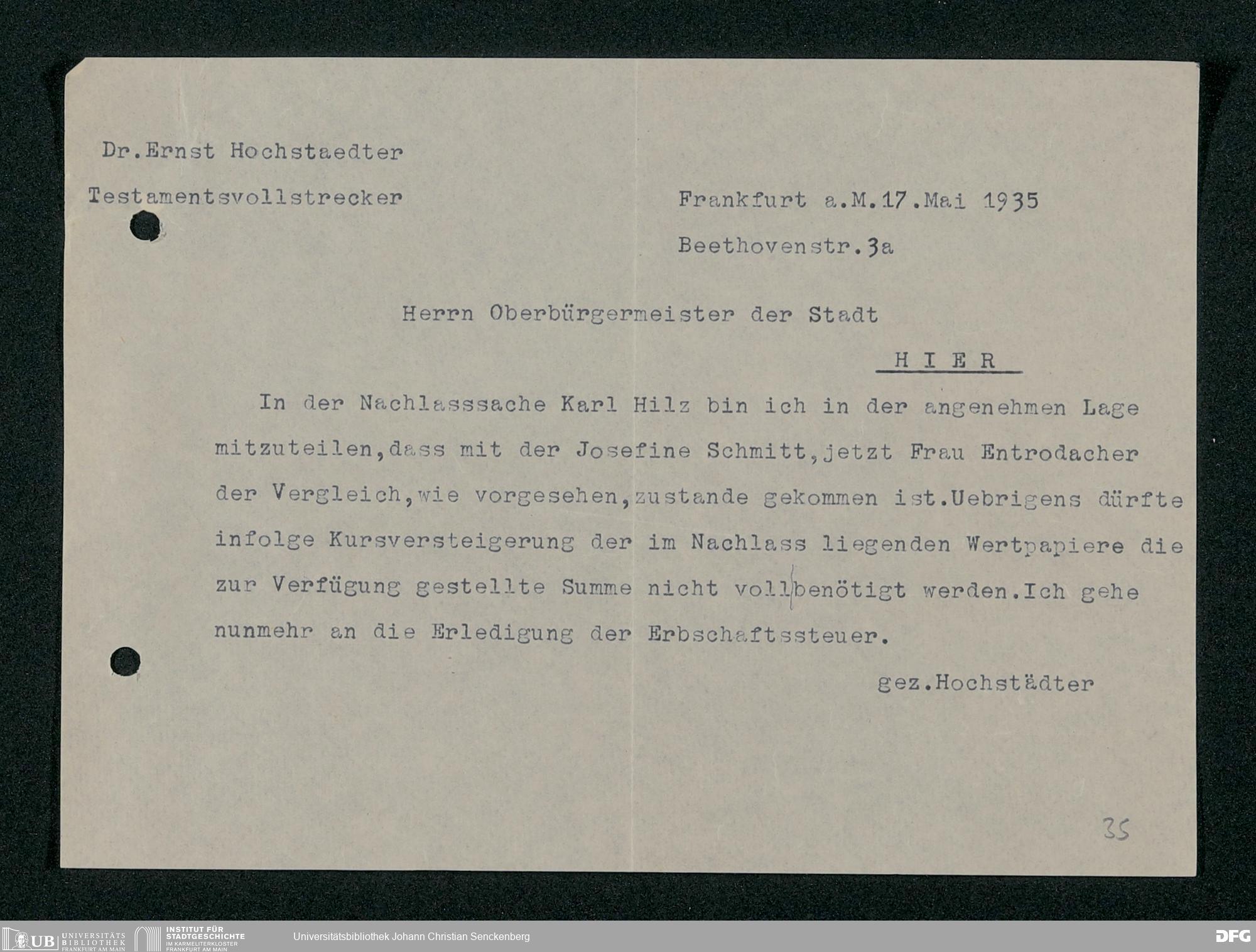 V48 Dr. Senckenbergische Stiftung, 317 - Nachlässe Hilz und Fritsch