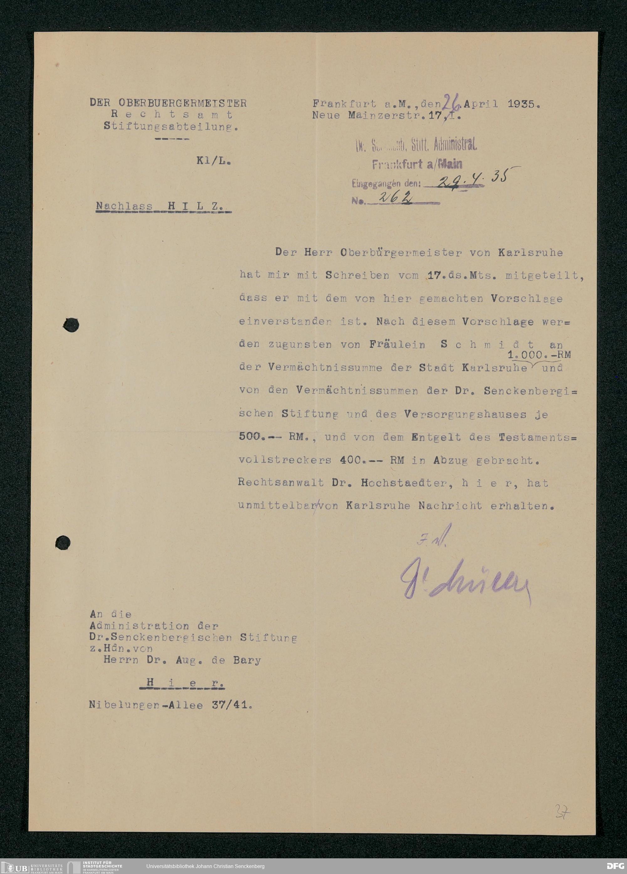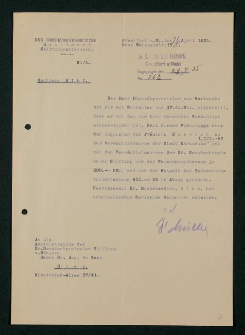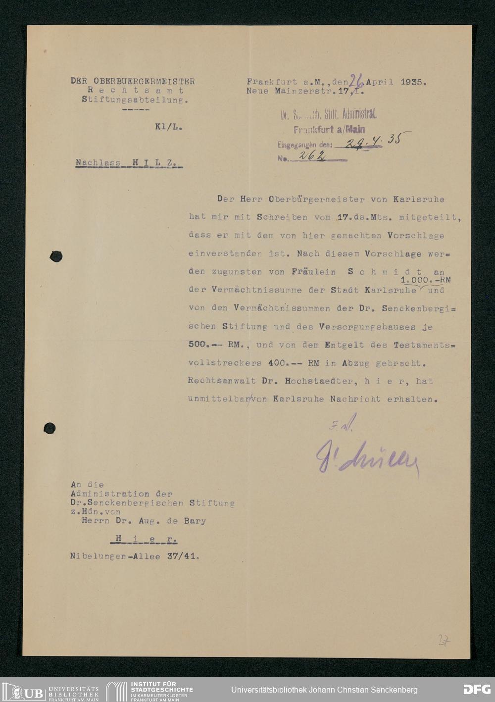 V48 Dr. Senckenbergische Stiftung, 317 - Nachlässe Hilz und Fritsch