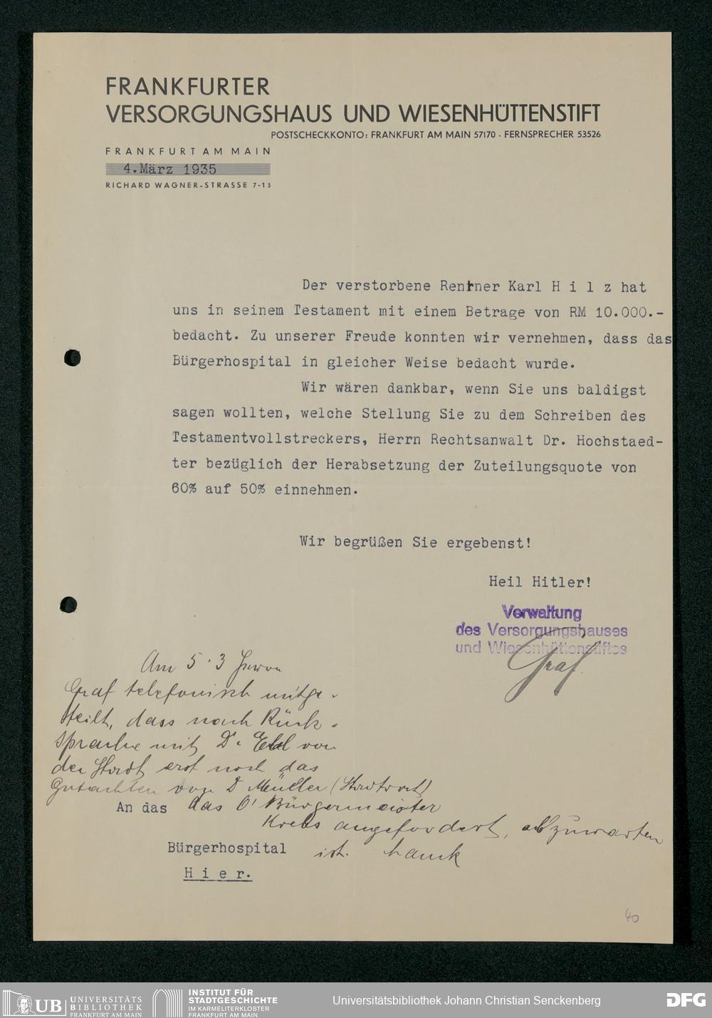 V48 Dr. Senckenbergische Stiftung, 317 - Nachlässe Hilz und Fritsch