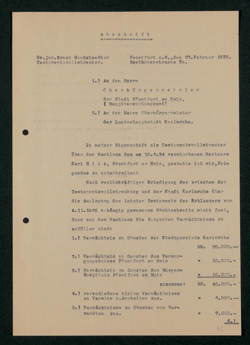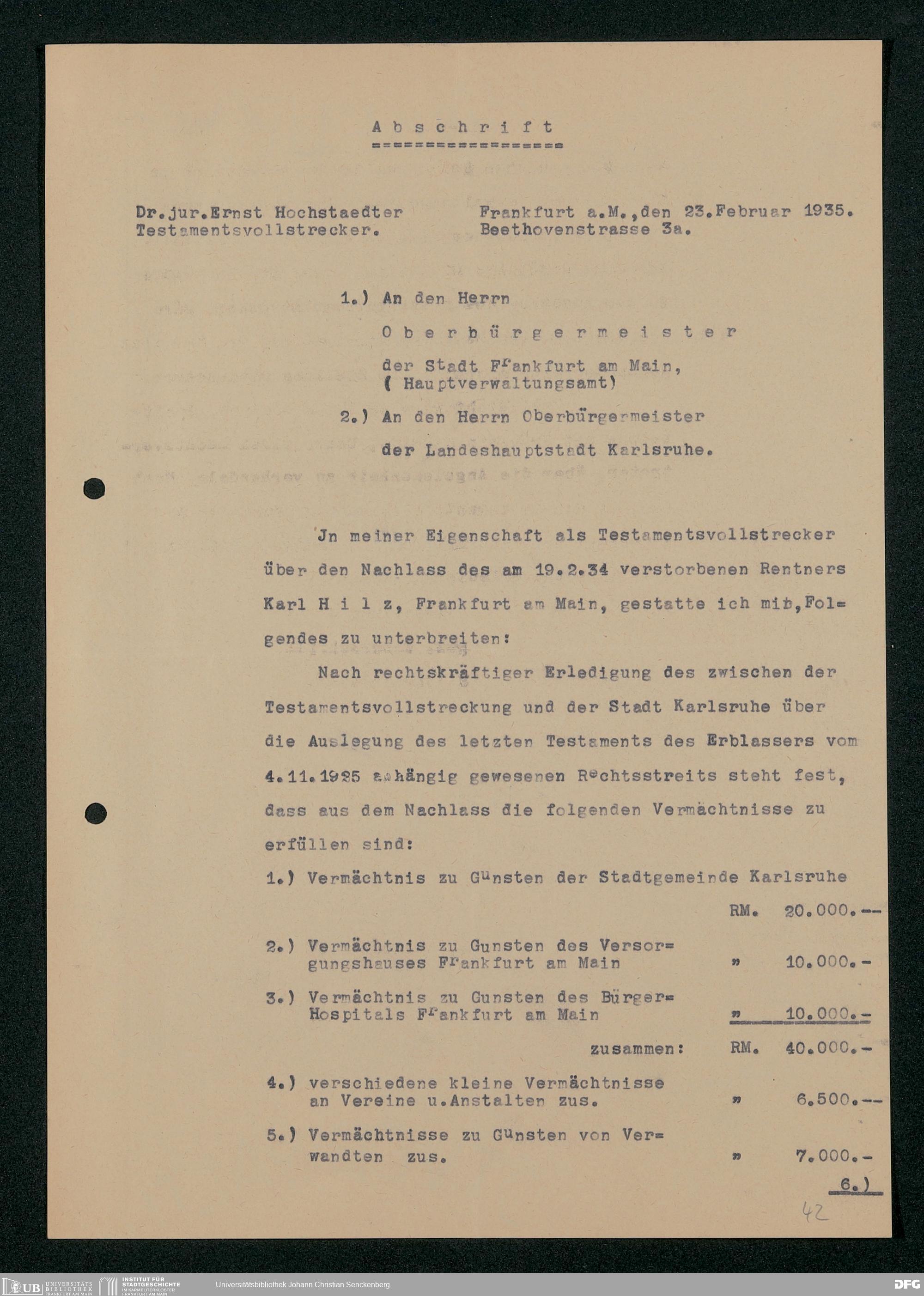 V48 Dr. Senckenbergische Stiftung, 317 - Nachlässe Hilz und Fritsch