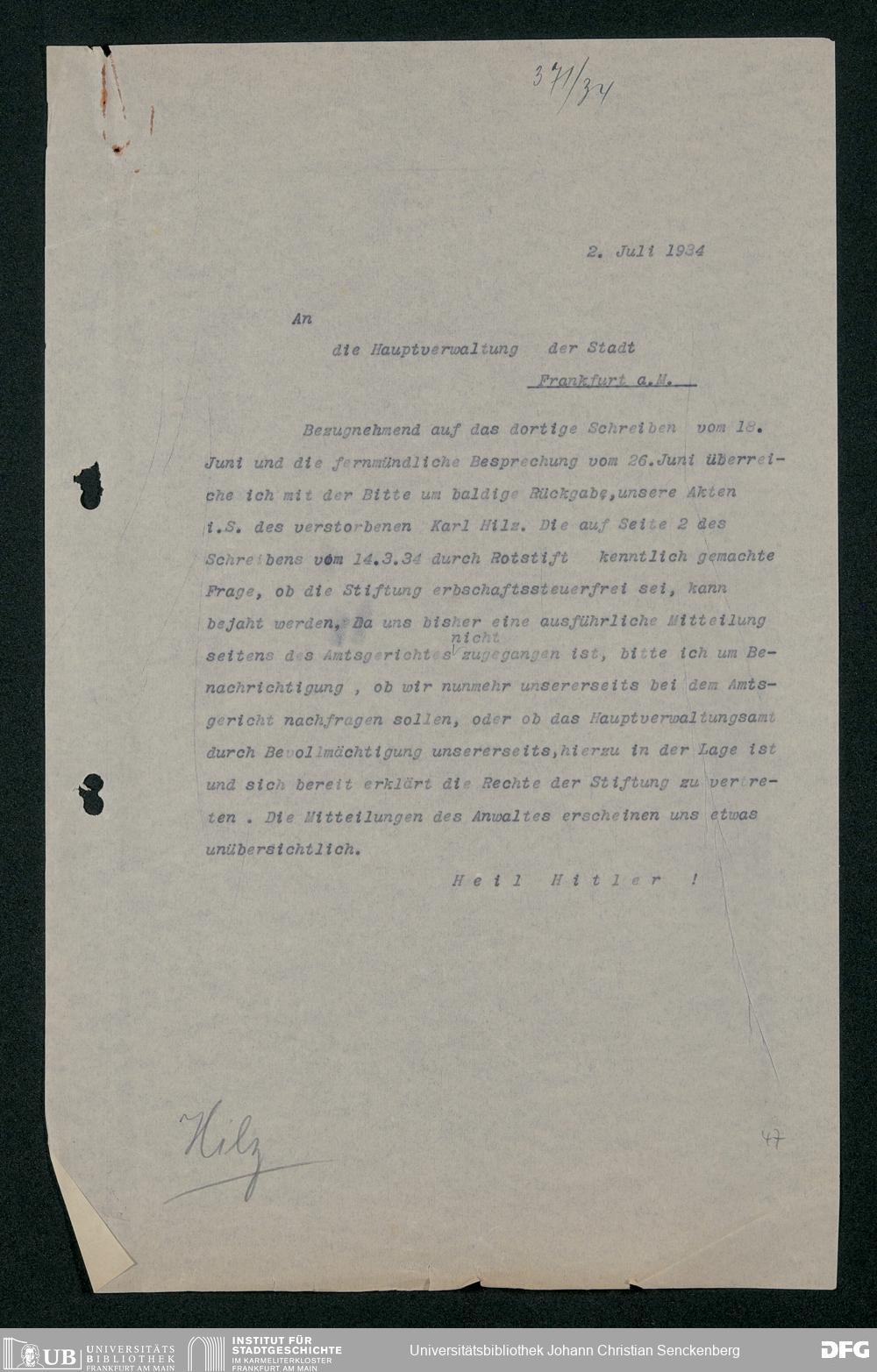 V48 Dr. Senckenbergische Stiftung, 317 - Nachlässe Hilz und Fritsch