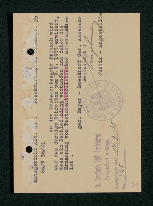 V48 Dr. Senckenbergische Stiftung, 317 - Nachlässe Hilz und Fritsch