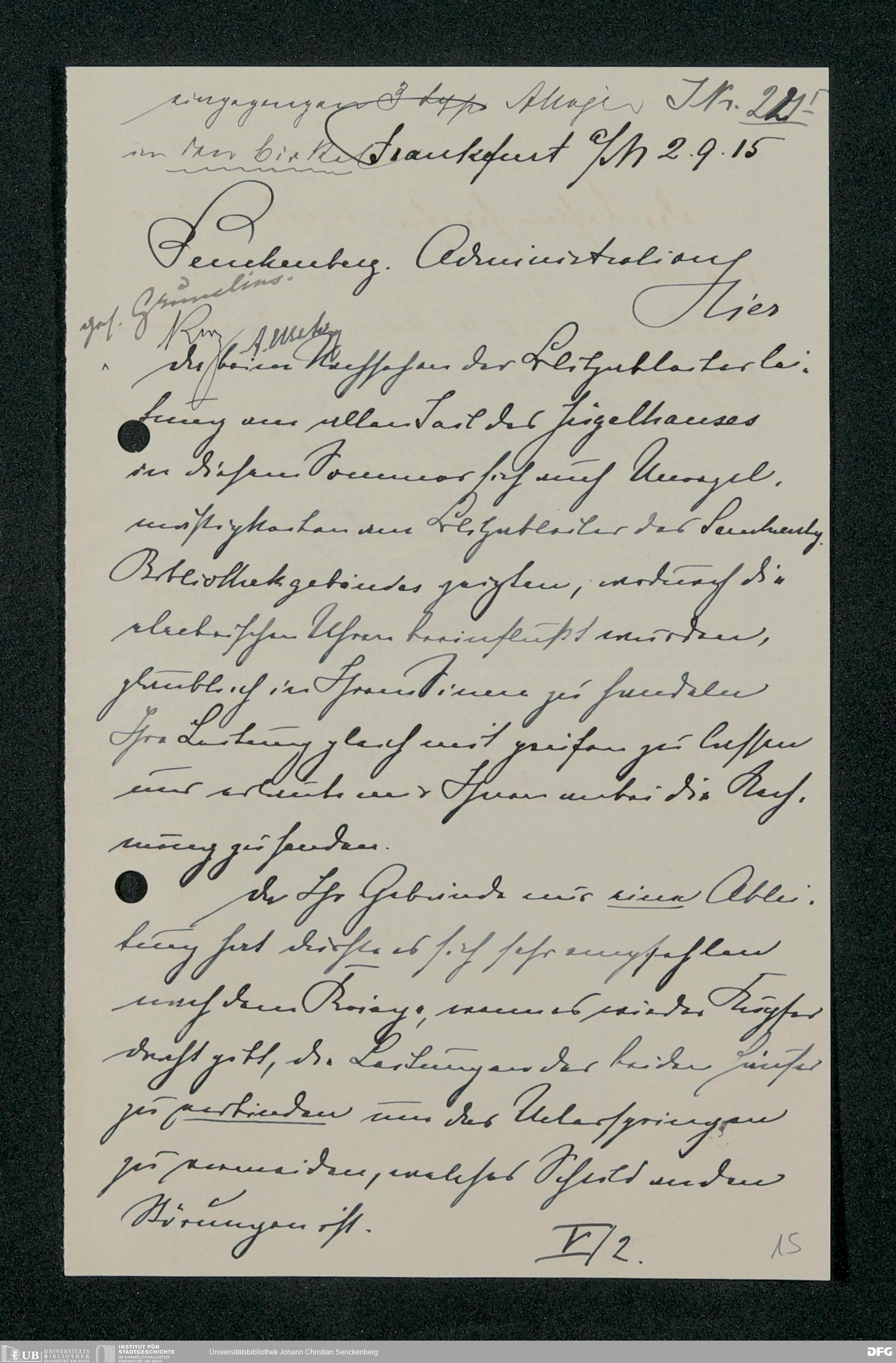 V48 Dr. Senckenbergische Stiftung, 321 - Verschiedene Bibliotheksangelegenheiten