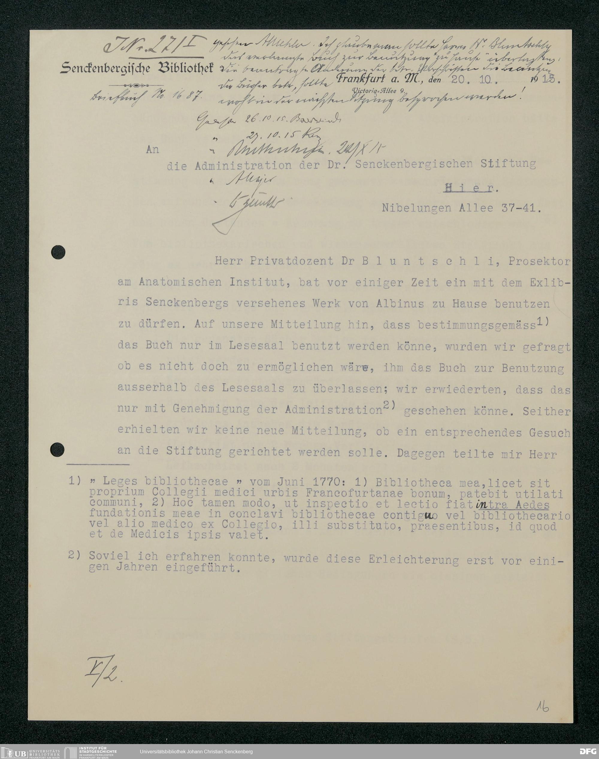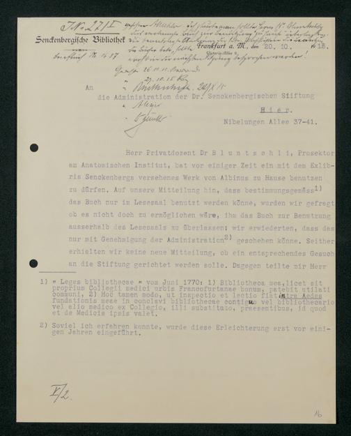 V48 Dr. Senckenbergische Stiftung, 321 - Verschiedene Bibliotheksangelegenheiten