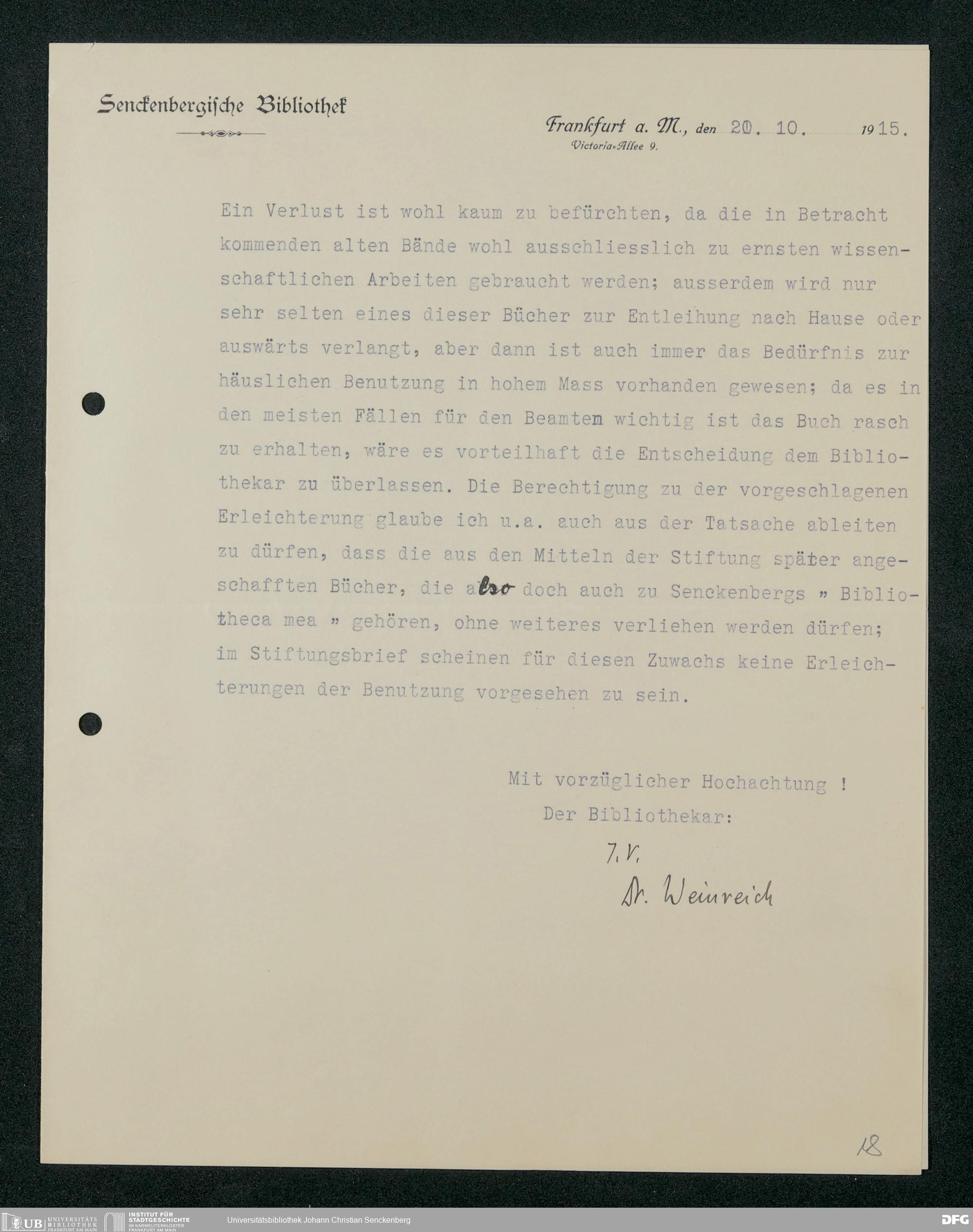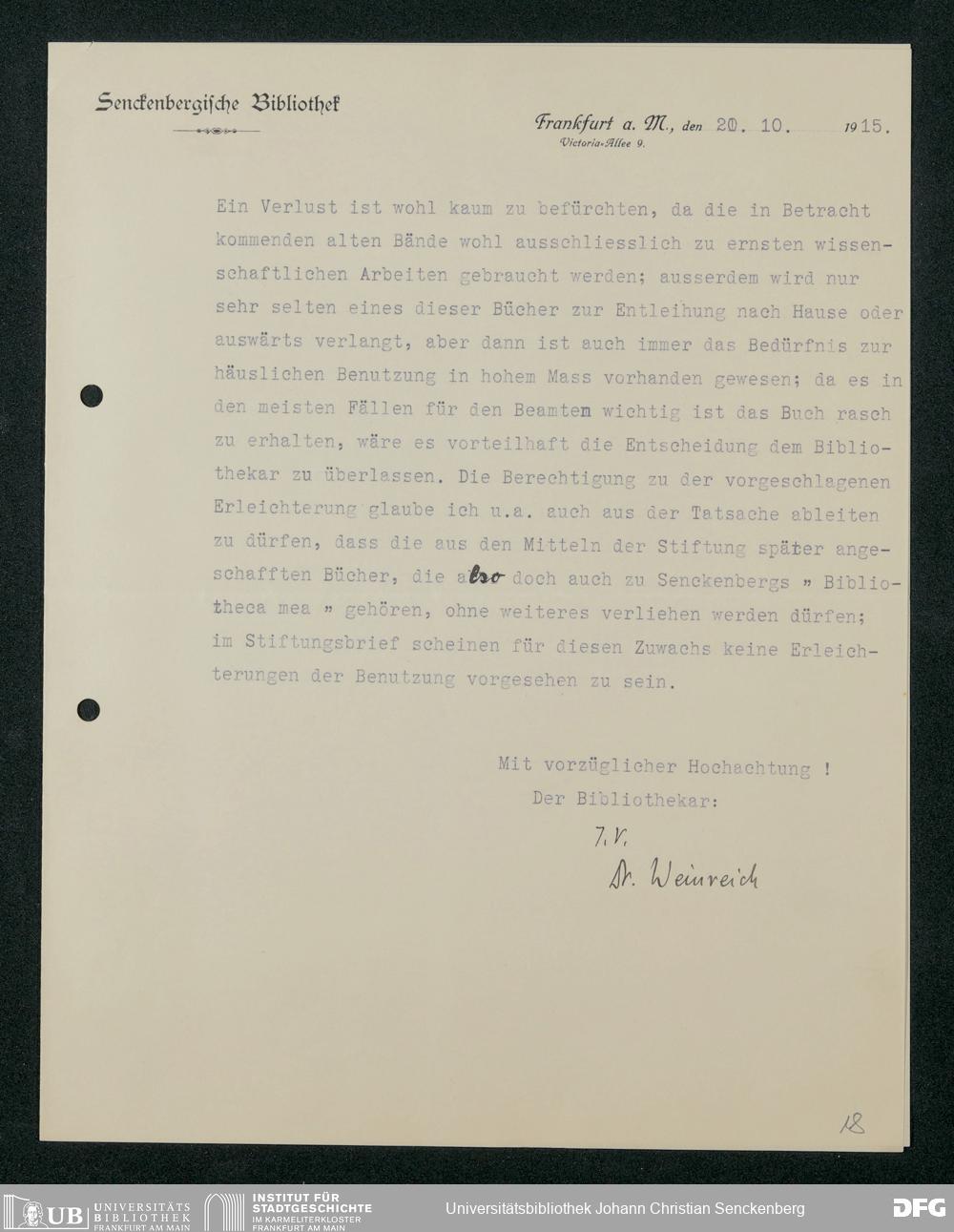 V48 Dr. Senckenbergische Stiftung, 321 - Verschiedene Bibliotheksangelegenheiten