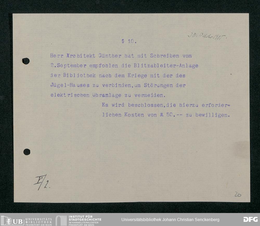 V48 Dr. Senckenbergische Stiftung, 321 - Verschiedene Bibliotheksangelegenheiten