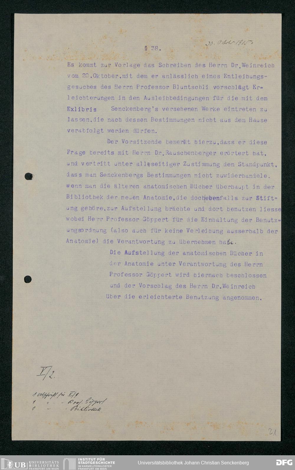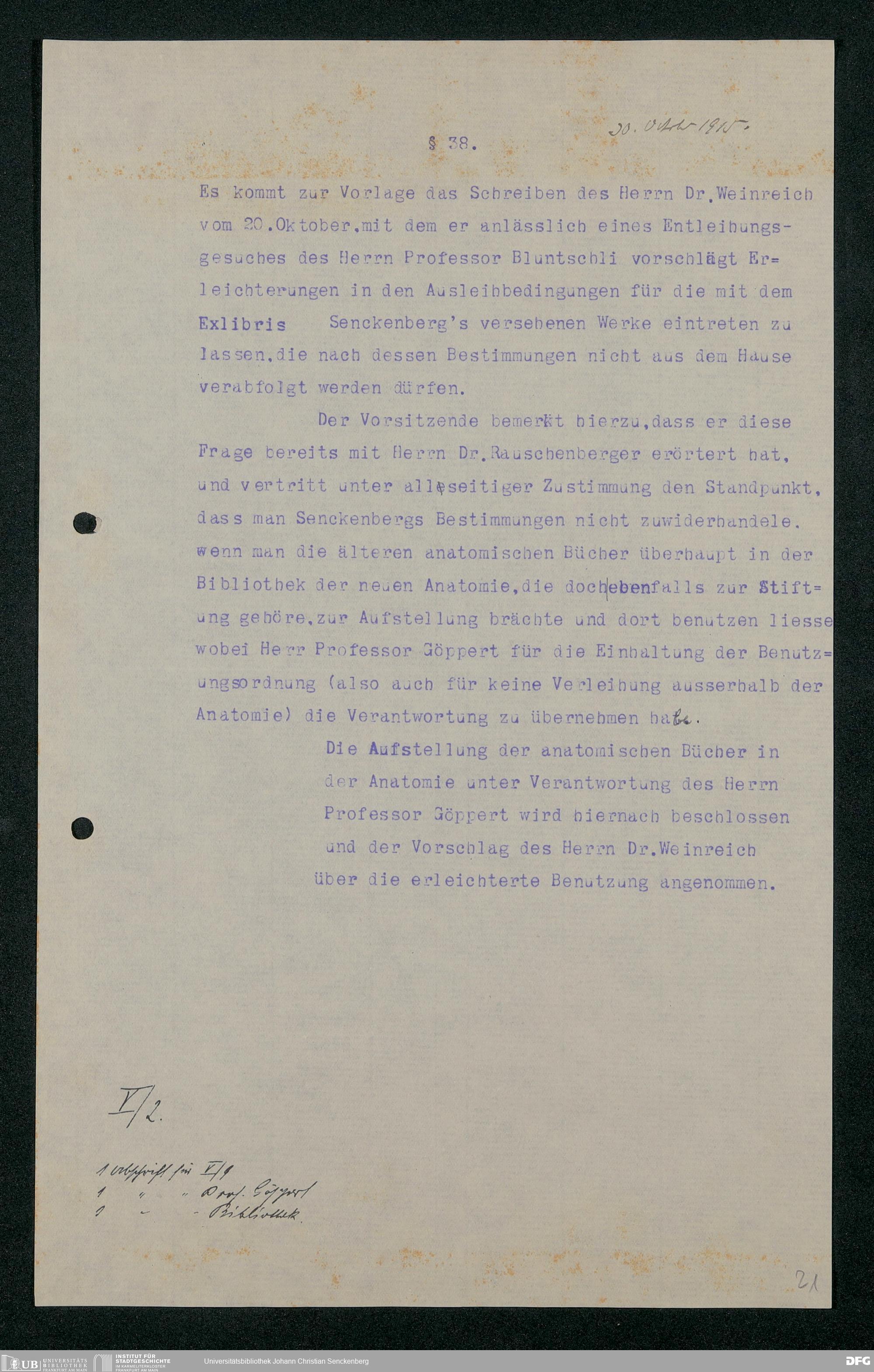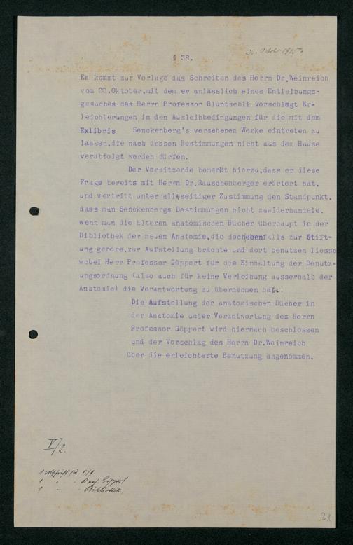V48 Dr. Senckenbergische Stiftung, 321 - Verschiedene Bibliotheksangelegenheiten