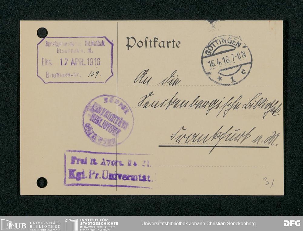 V48 Dr. Senckenbergische Stiftung, 321 - Verschiedene Bibliotheksangelegenheiten
