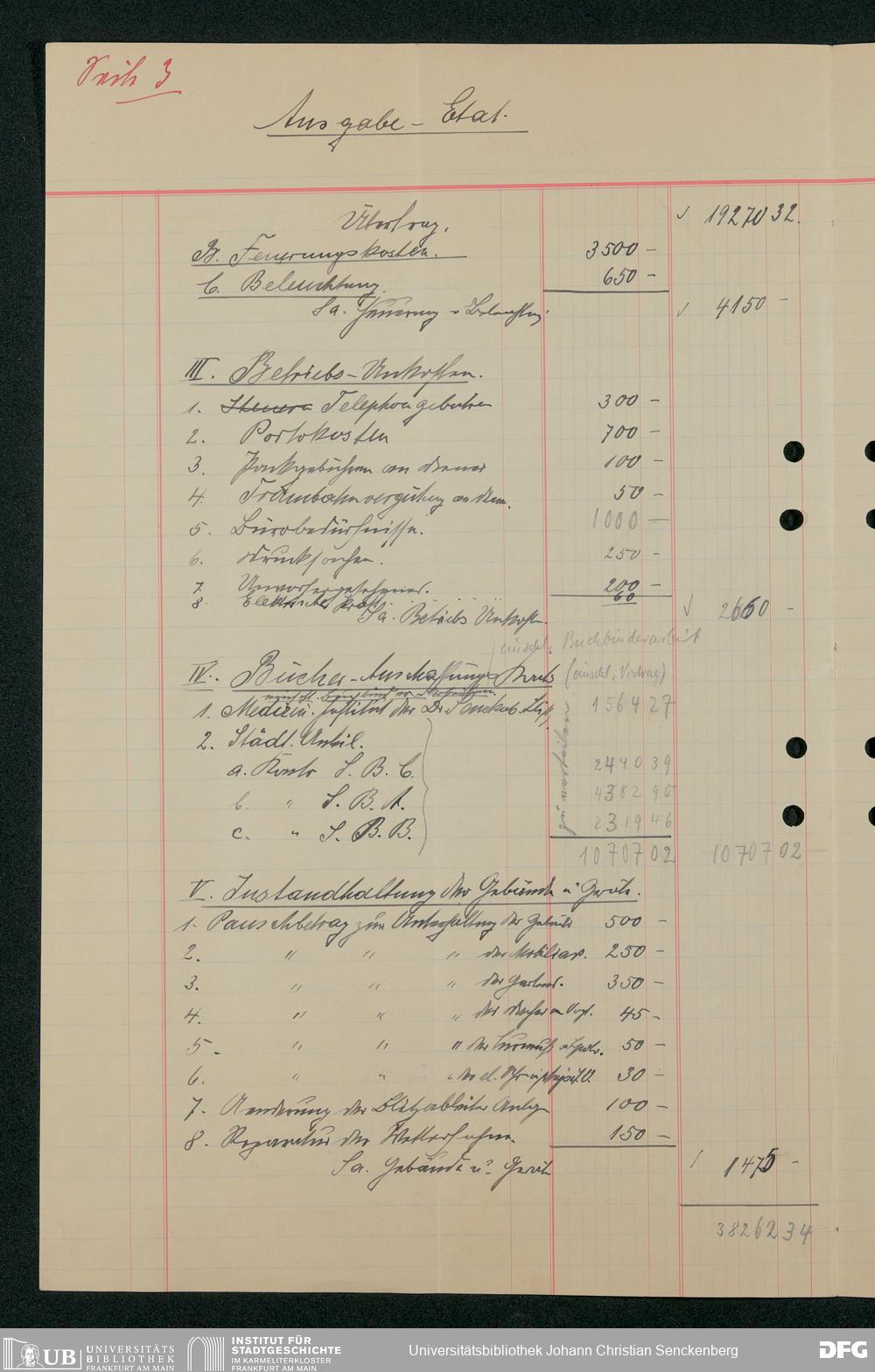 V48 Dr. Senckenbergische Stiftung, 321 - Verschiedene Bibliotheksangelegenheiten