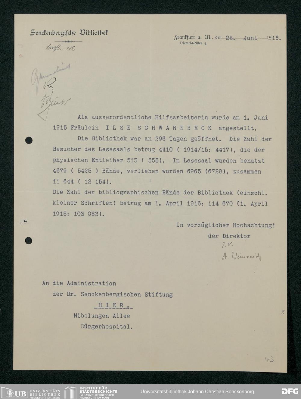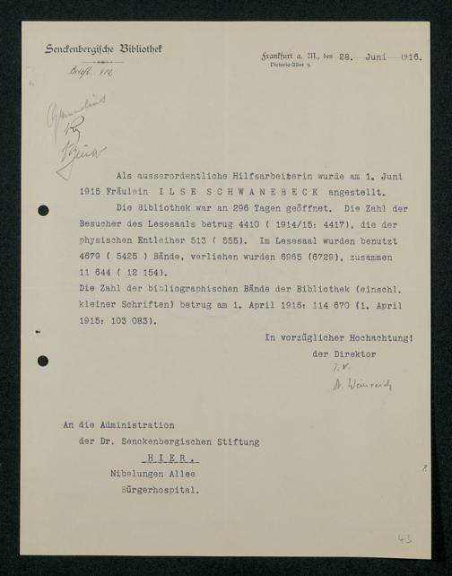 V48 Dr. Senckenbergische Stiftung, 321 - Verschiedene Bibliotheksangelegenheiten