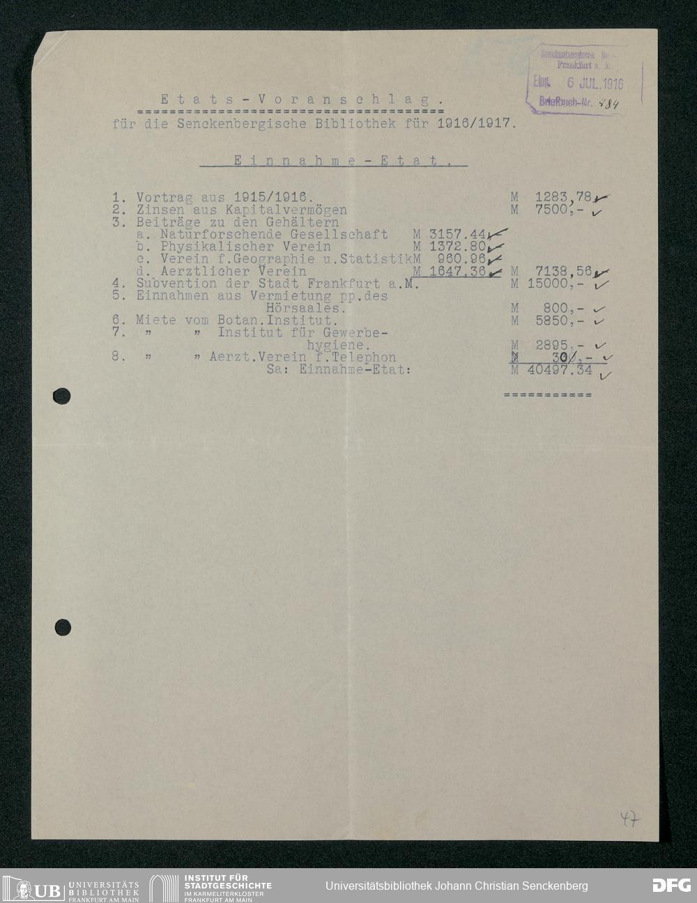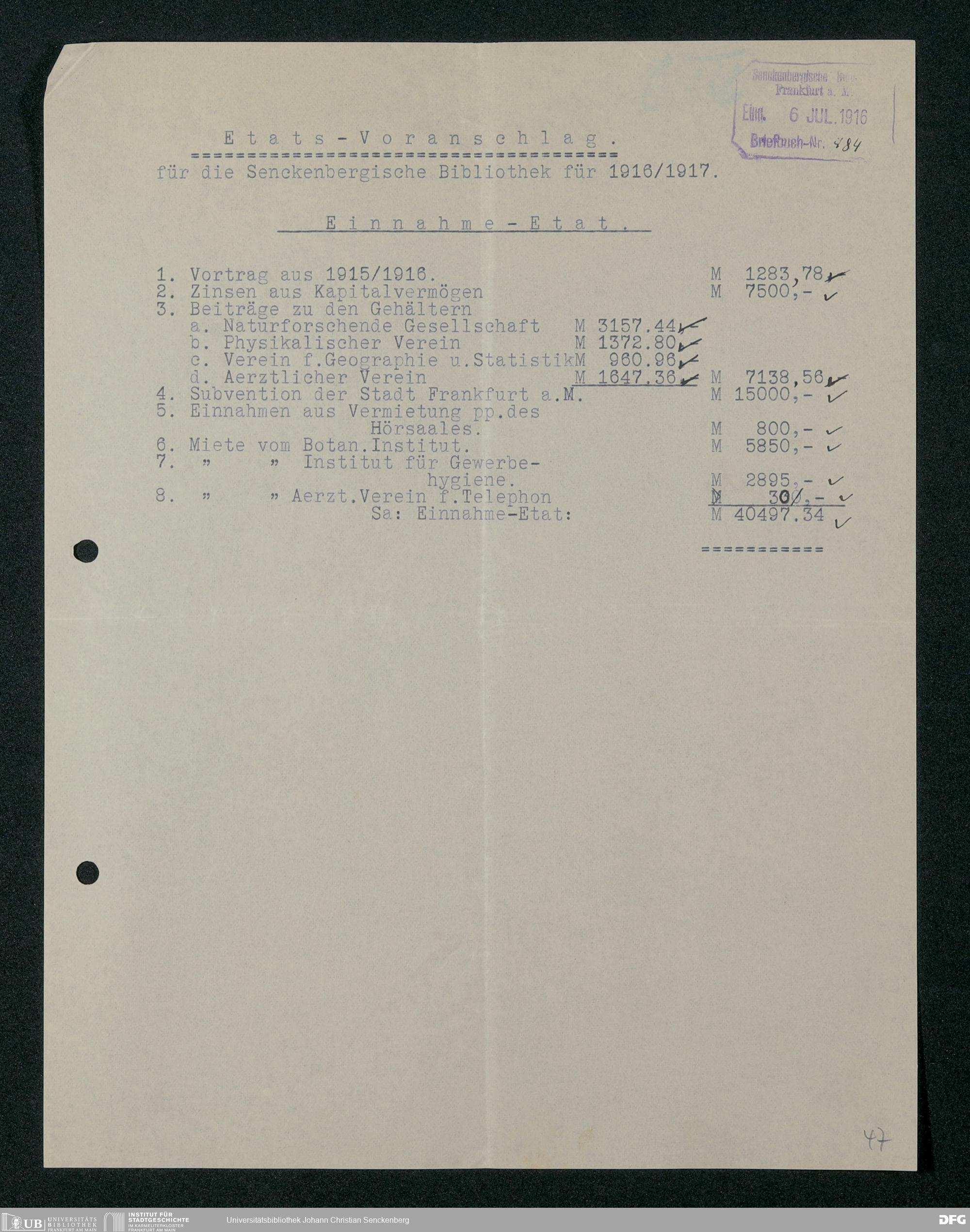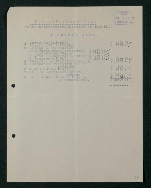 V48 Dr. Senckenbergische Stiftung, 321 - Verschiedene Bibliotheksangelegenheiten
