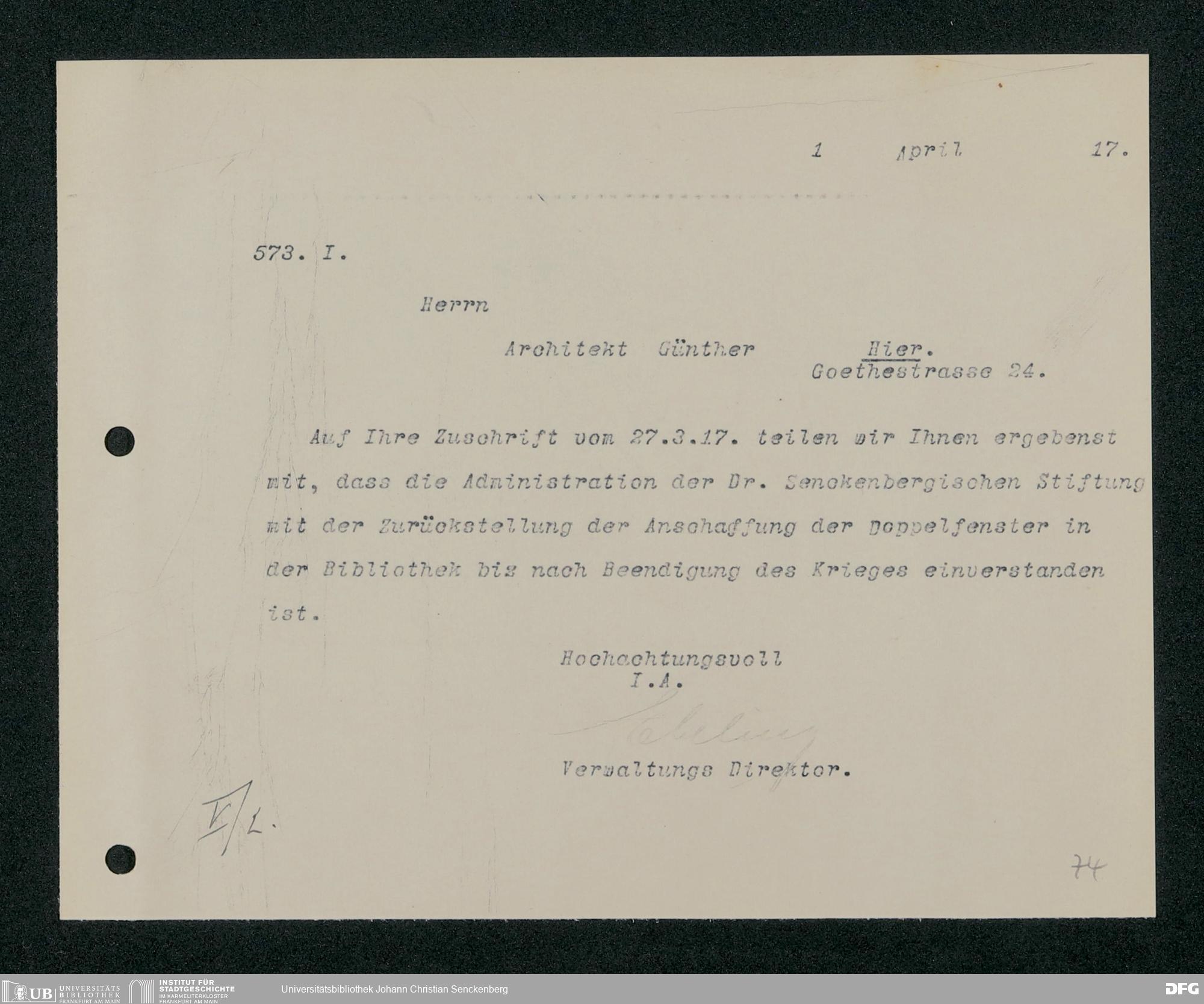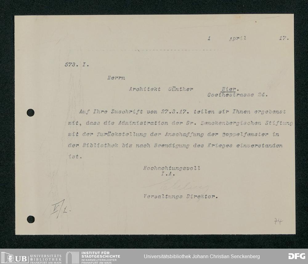V48 Dr. Senckenbergische Stiftung, 321 - Verschiedene Bibliotheksangelegenheiten