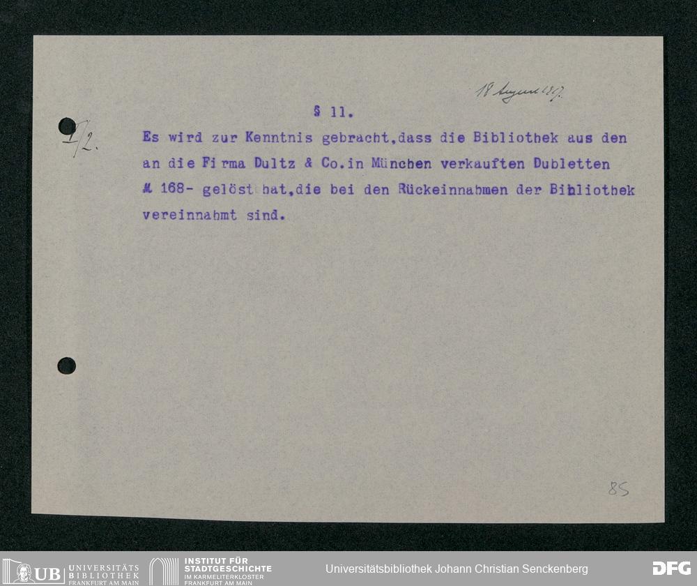 V48 Dr. Senckenbergische Stiftung, 321 - Verschiedene Bibliotheksangelegenheiten