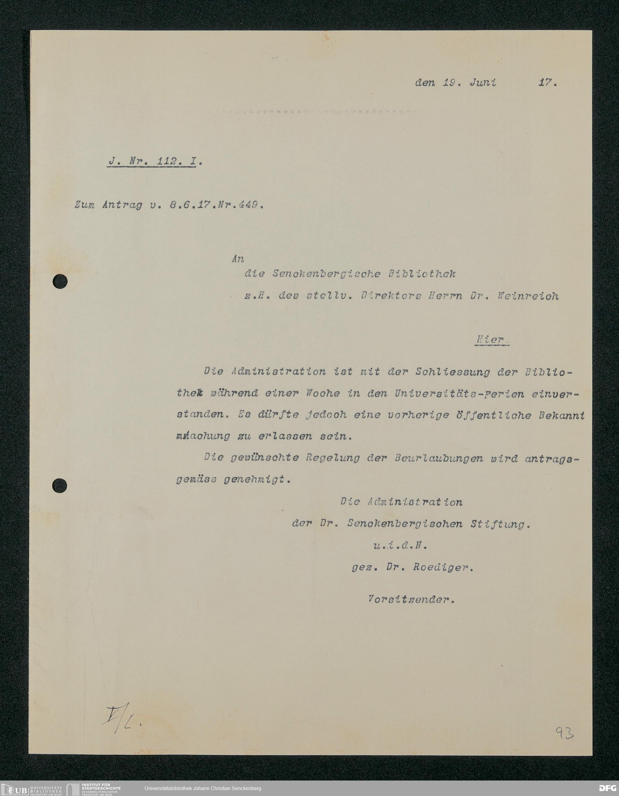 V48 Dr. Senckenbergische Stiftung, 321 - Verschiedene Bibliotheksangelegenheiten