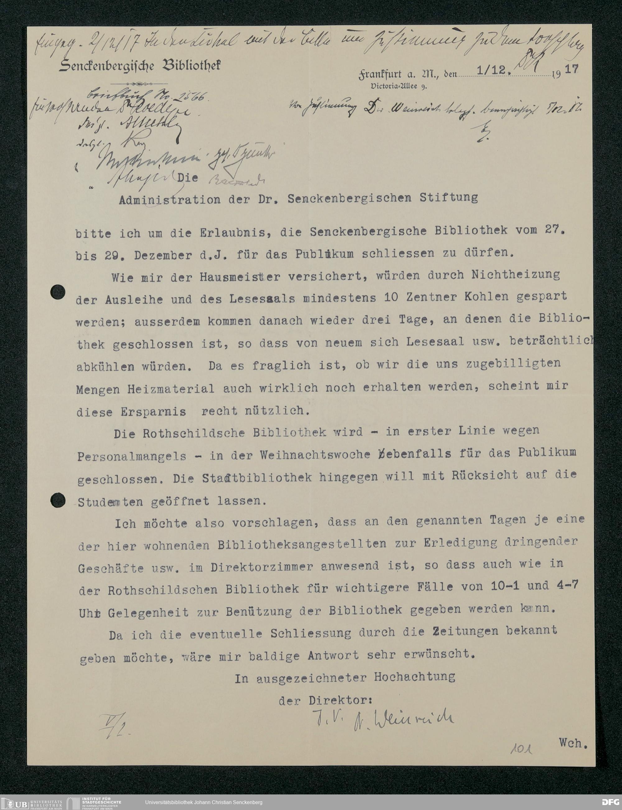 V48 Dr. Senckenbergische Stiftung, 321 - Verschiedene Bibliotheksangelegenheiten