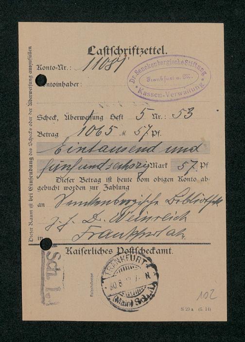 V48 Dr. Senckenbergische Stiftung, 321 - Verschiedene Bibliotheksangelegenheiten