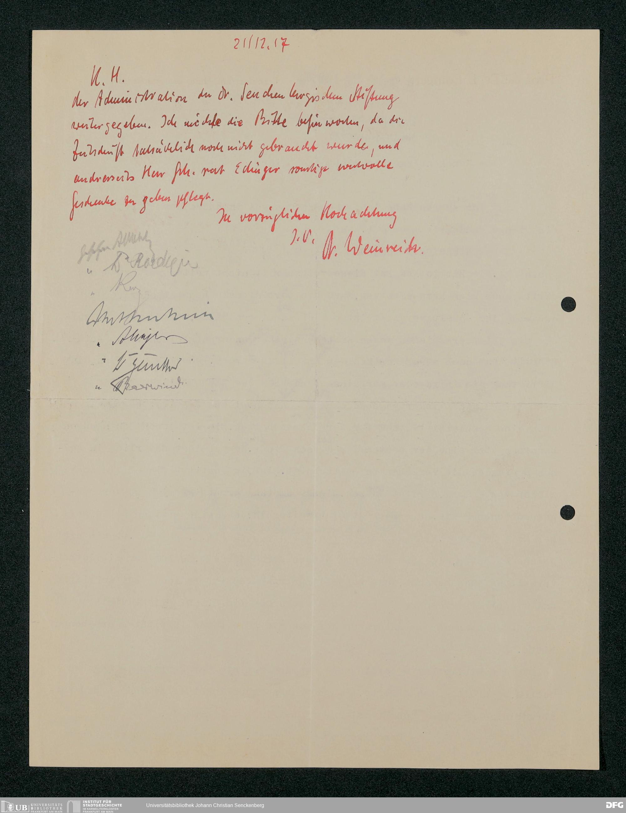V48 Dr. Senckenbergische Stiftung, 321 - Verschiedene Bibliotheksangelegenheiten