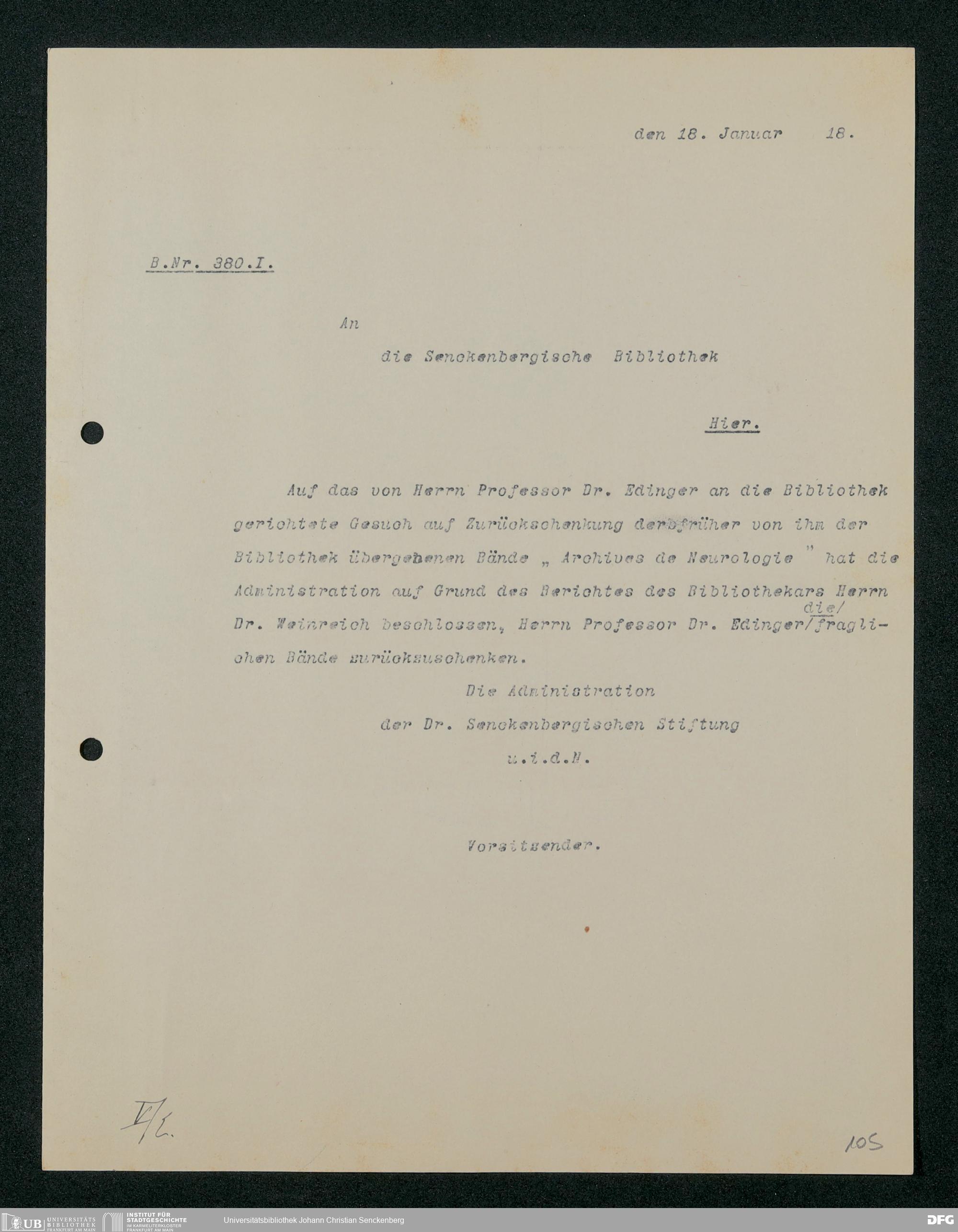 V48 Dr. Senckenbergische Stiftung, 321 - Verschiedene Bibliotheksangelegenheiten