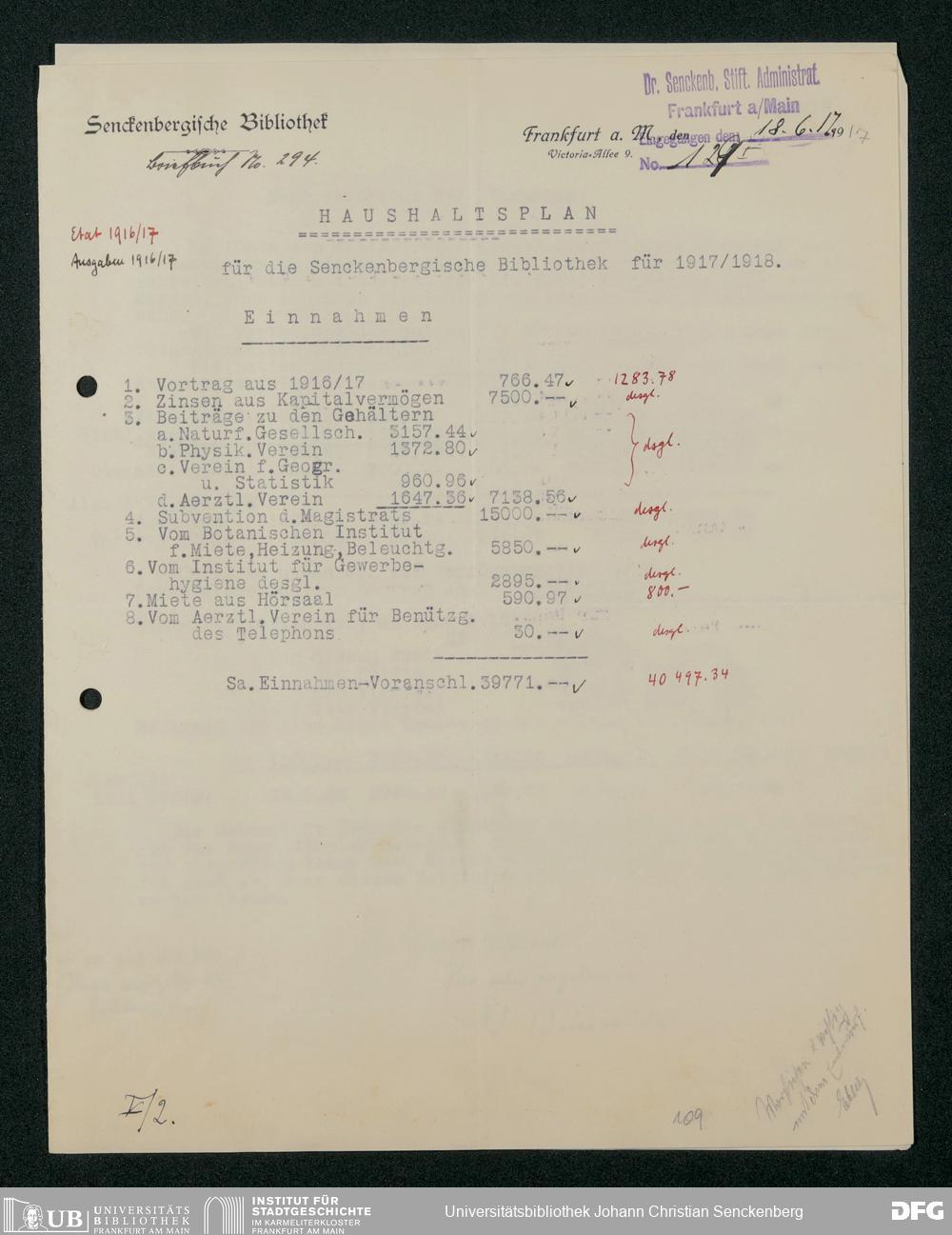 V48 Dr. Senckenbergische Stiftung, 321 - Verschiedene Bibliotheksangelegenheiten