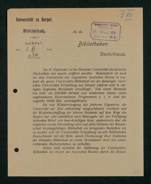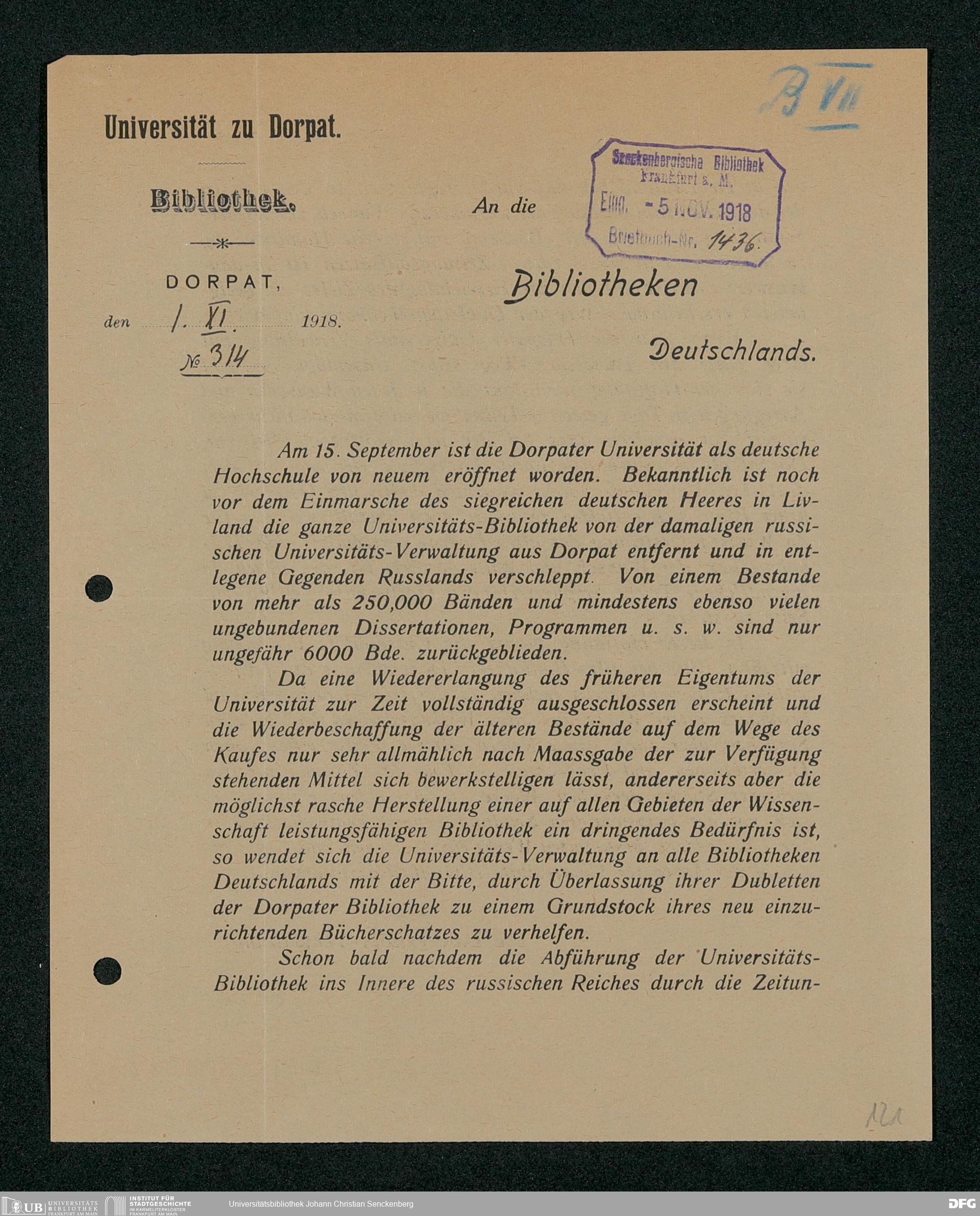 V48 Dr. Senckenbergische Stiftung, 321 - Verschiedene Bibliotheksangelegenheiten