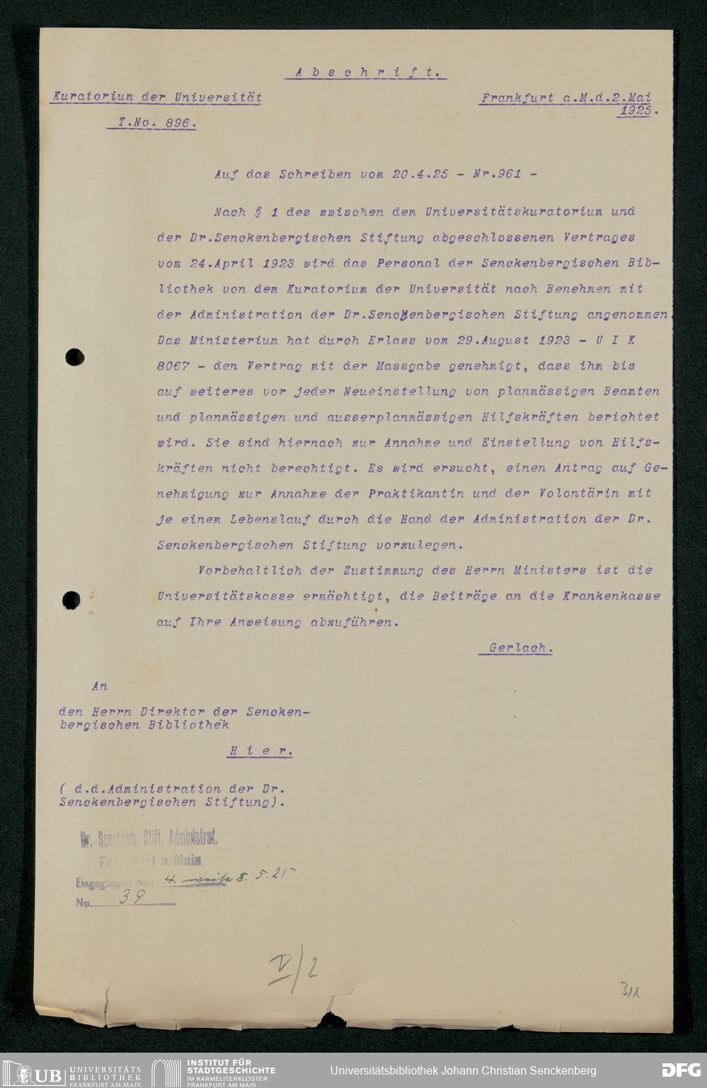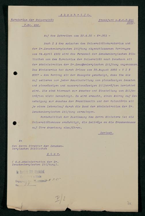 V48 Dr. Senckenbergische Stiftung, 321 - Verschiedene Bibliotheksangelegenheiten