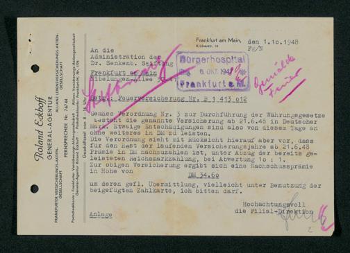V48 Dr. Senckenbergische Stiftung, 331 - Versicherung der Gemäldesammlung