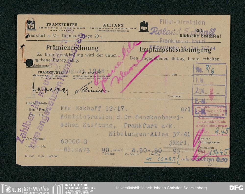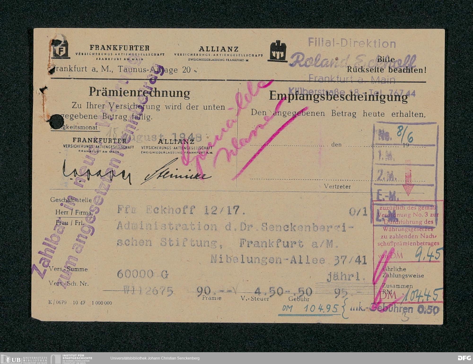 V48 Dr. Senckenbergische Stiftung, 331 - Versicherung der Gemäldesammlung