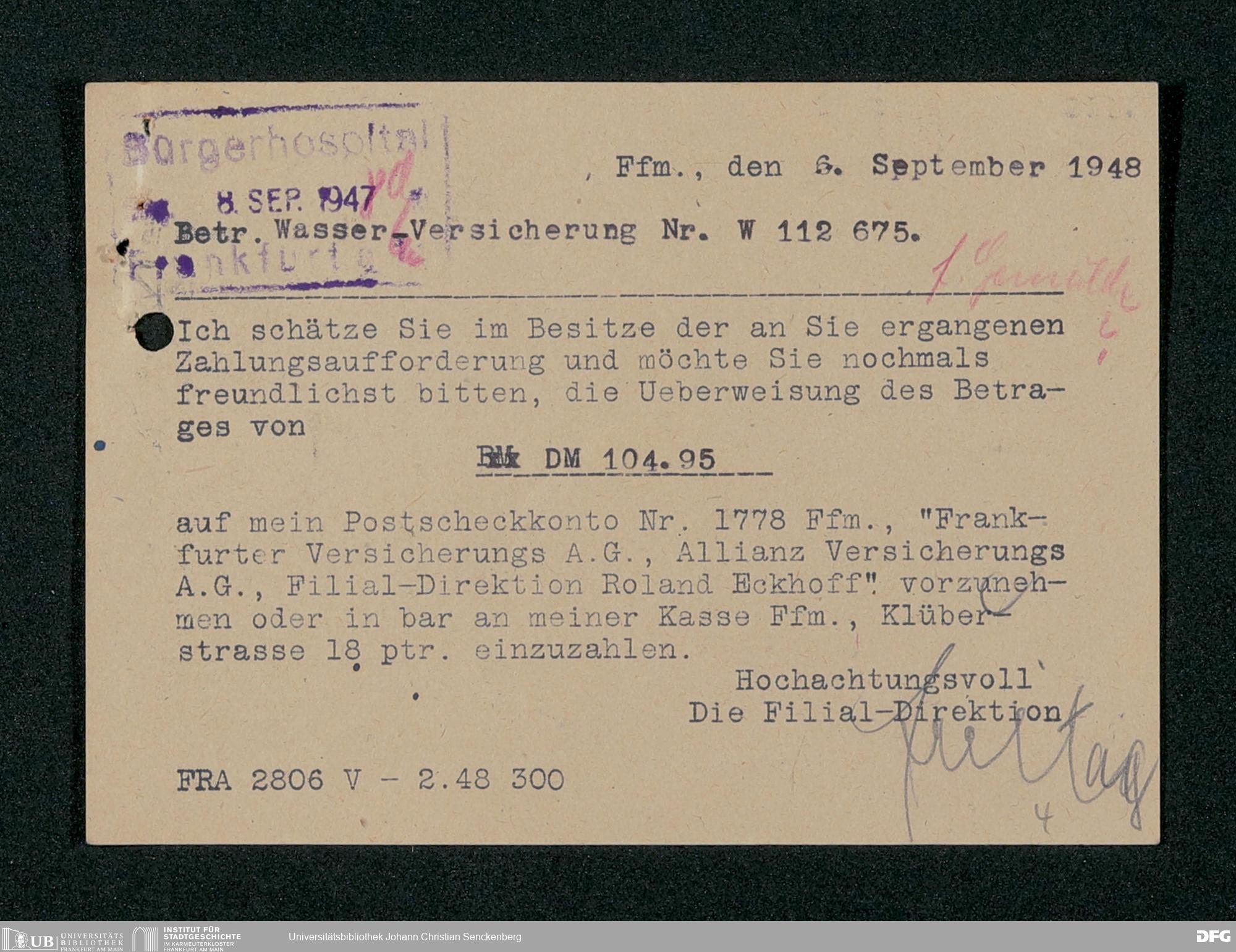 V48 Dr. Senckenbergische Stiftung, 331 - Versicherung der Gemäldesammlung