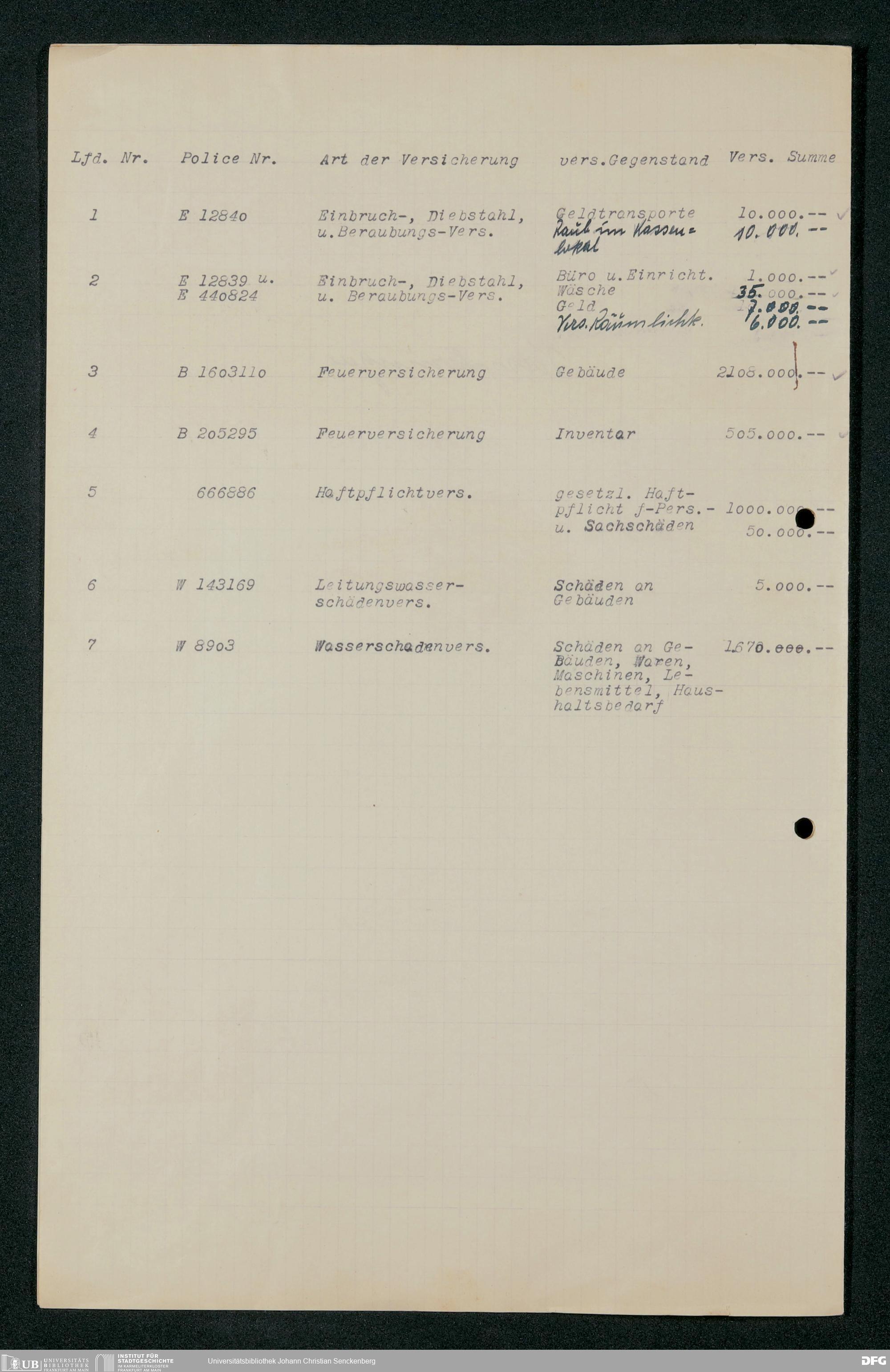 V48 Dr. Senckenbergische Stiftung, 331 - Versicherung der Gemäldesammlung