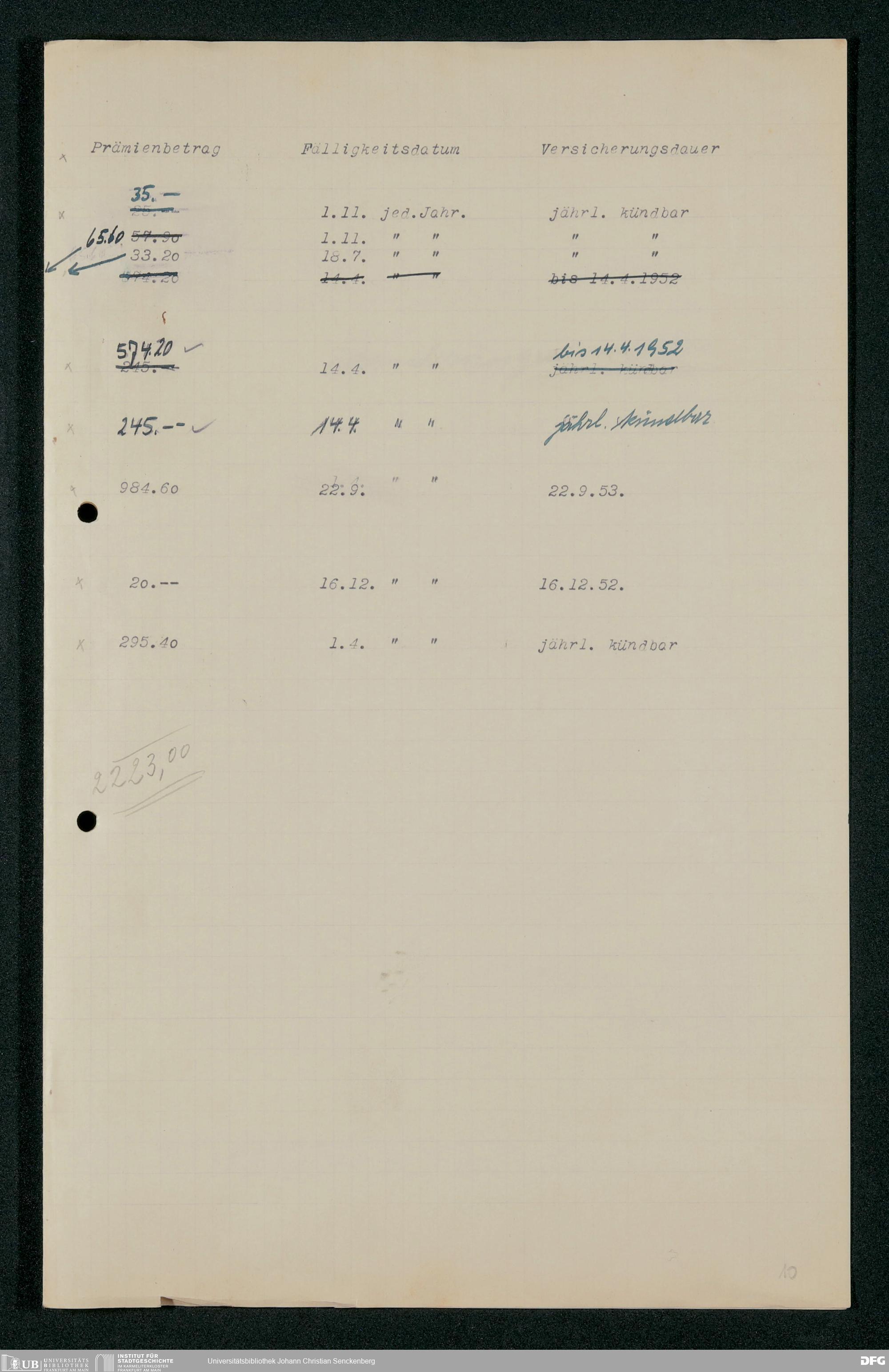 V48 Dr. Senckenbergische Stiftung, 331 - Versicherung der Gemäldesammlung