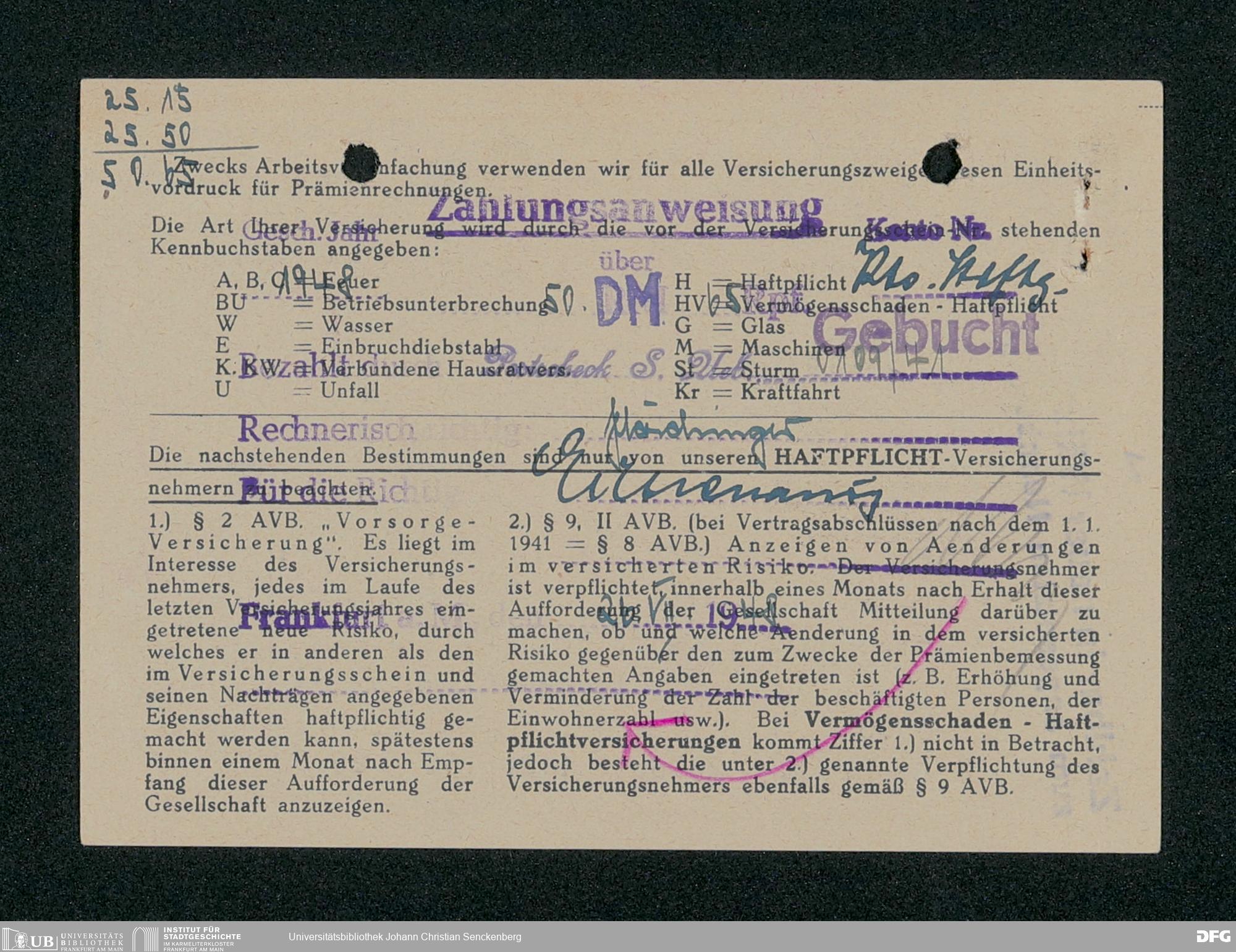 V48 Dr. Senckenbergische Stiftung, 331 - Versicherung der Gemäldesammlung