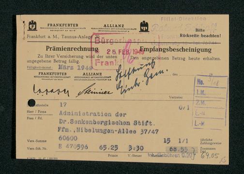 V48 Dr. Senckenbergische Stiftung, 331 - Versicherung der Gemäldesammlung