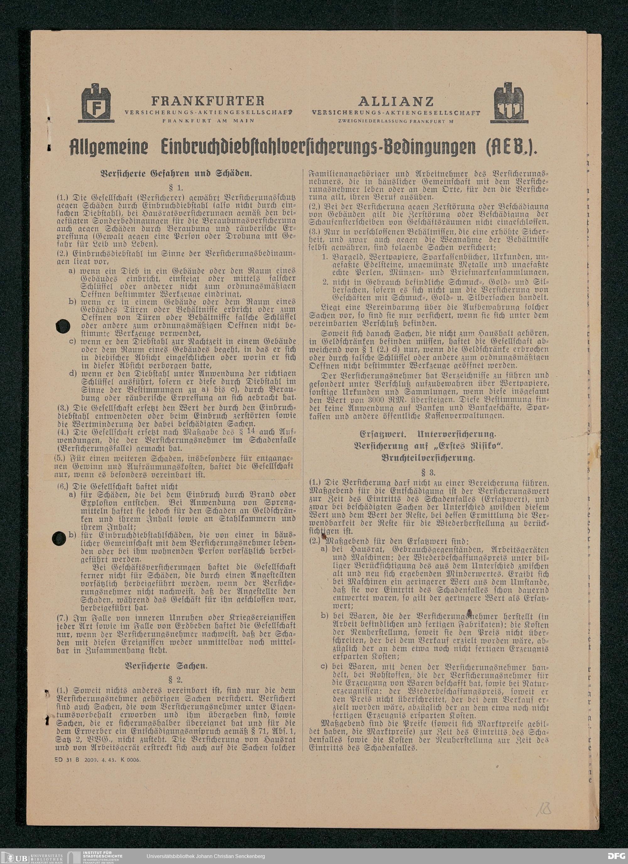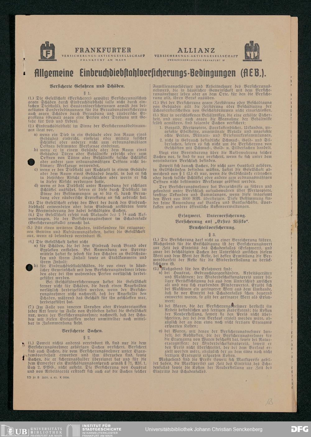 V48 Dr. Senckenbergische Stiftung, 331 - Versicherung der Gemäldesammlung