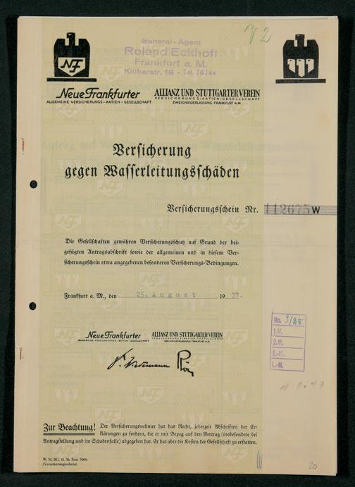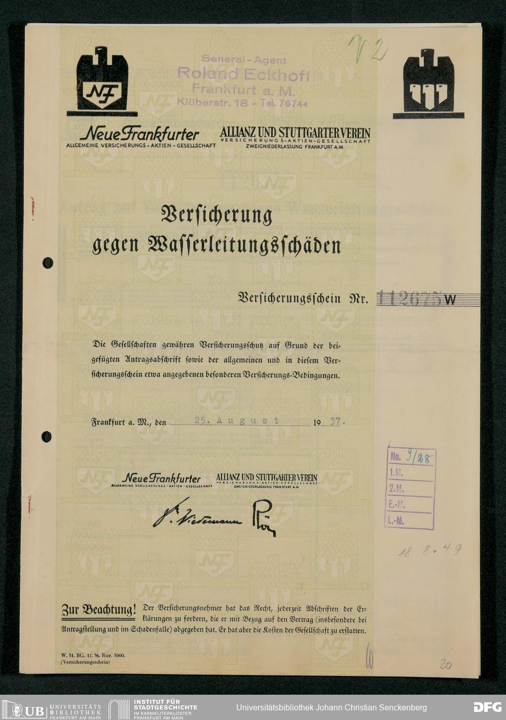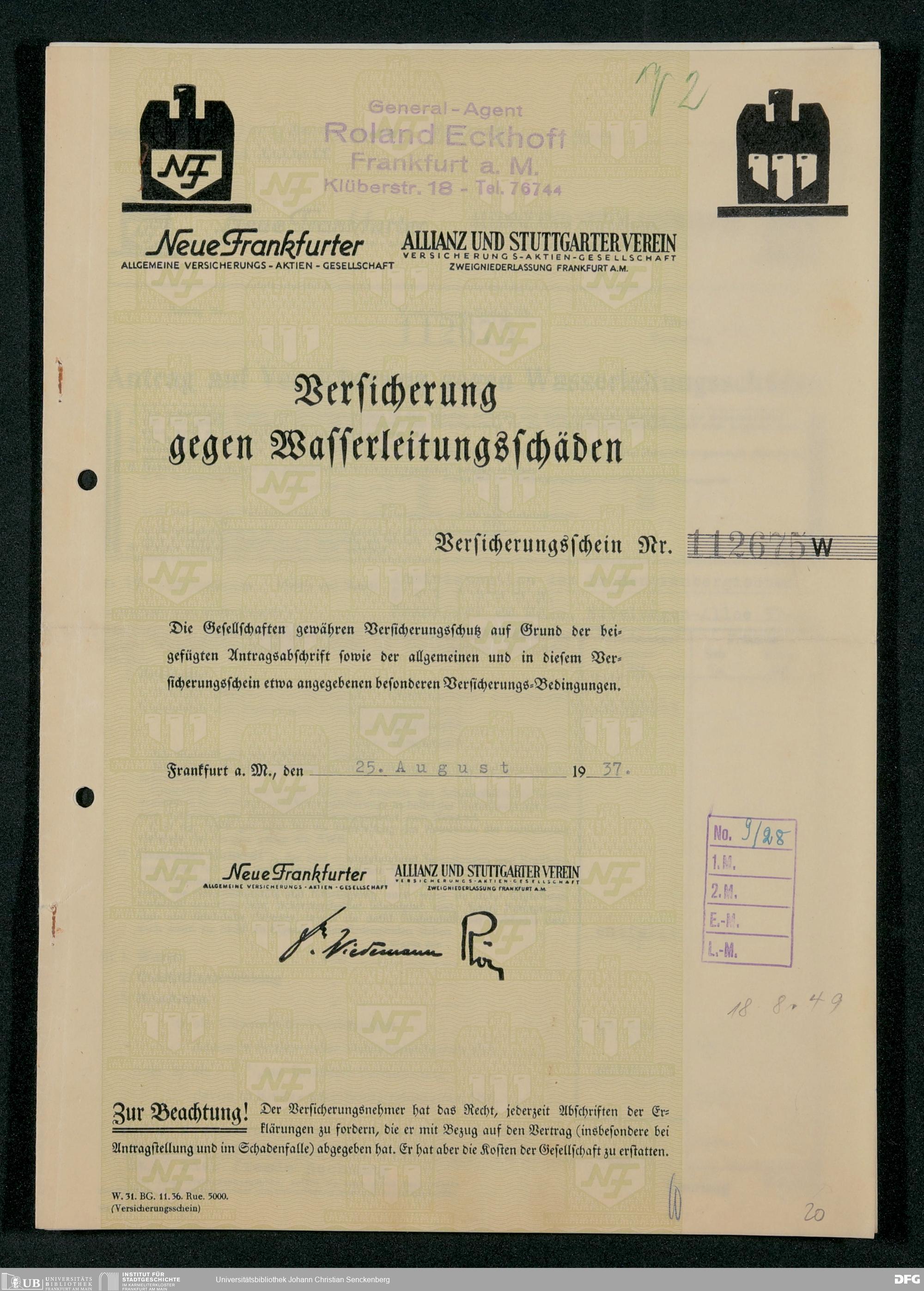 V48 Dr. Senckenbergische Stiftung, 331 - Versicherung der Gemäldesammlung
