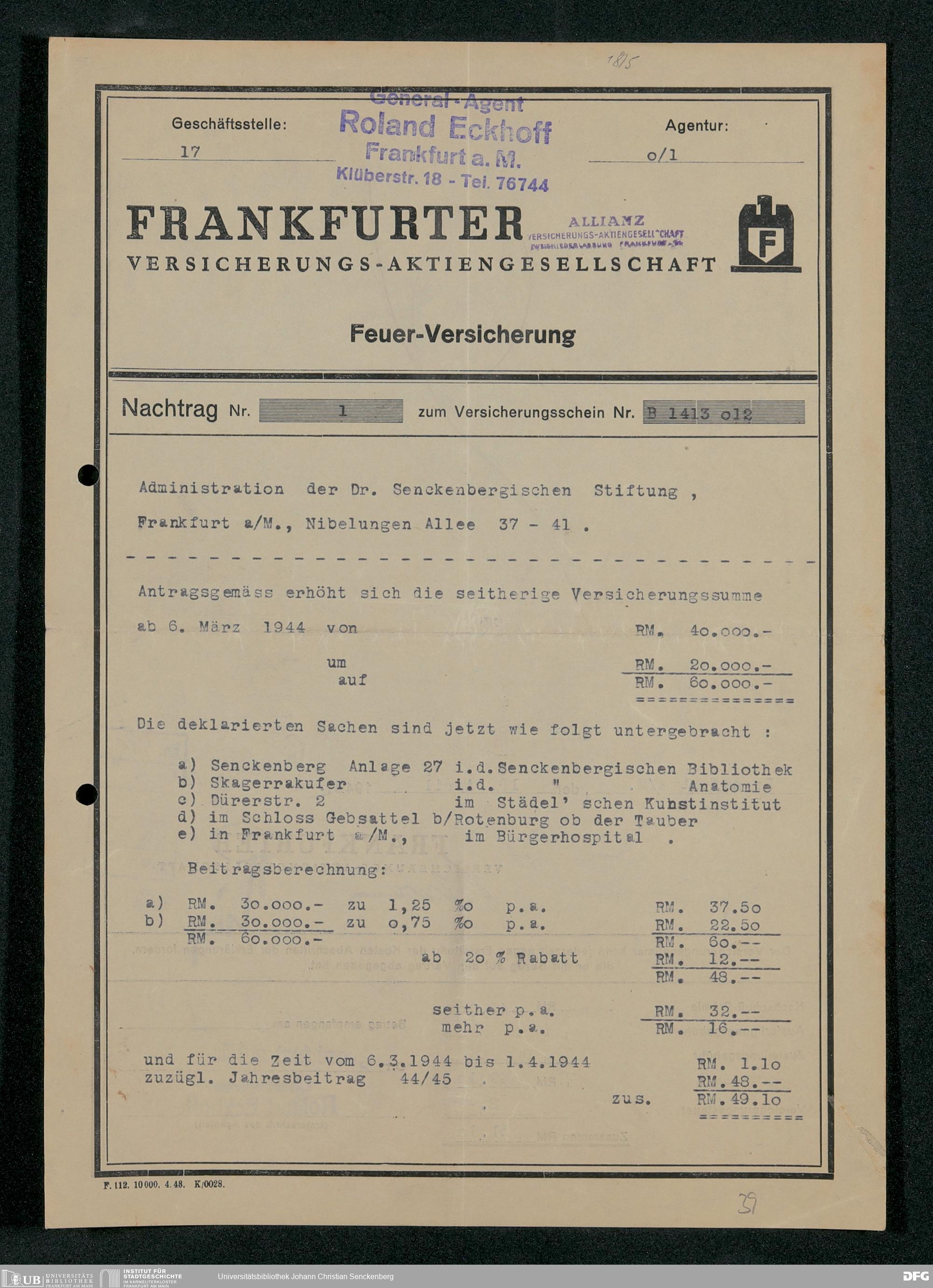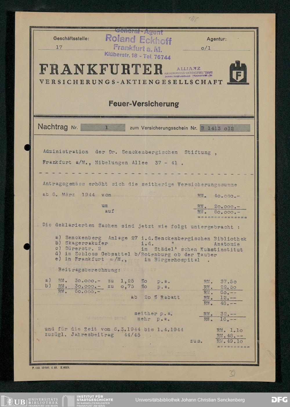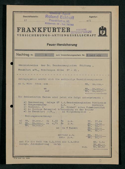 V48 Dr. Senckenbergische Stiftung, 331 - Versicherung der Gemäldesammlung