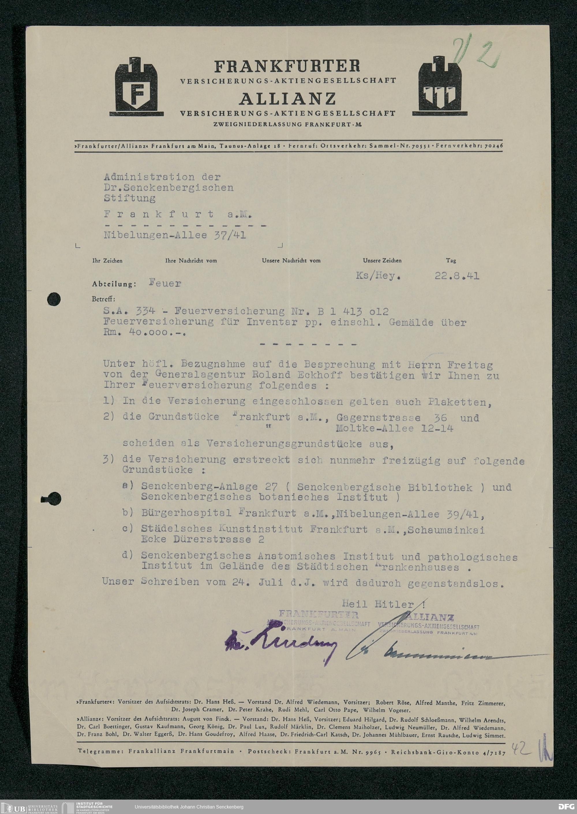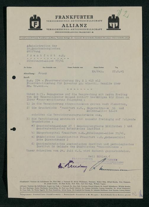 V48 Dr. Senckenbergische Stiftung, 331 - Versicherung der Gemäldesammlung