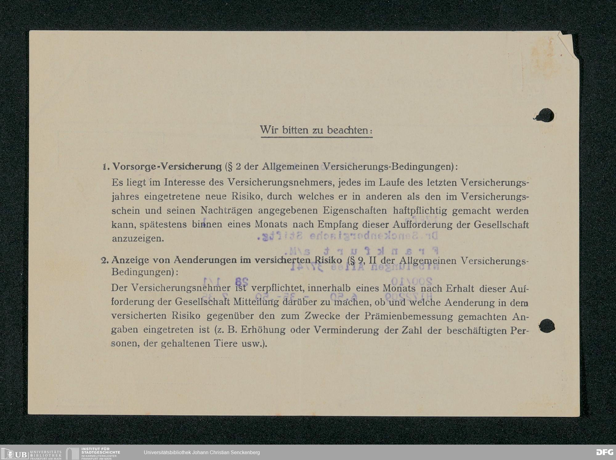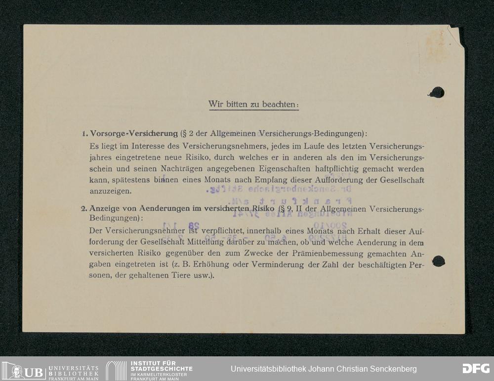 V48 Dr. Senckenbergische Stiftung, 331 - Versicherung der Gemäldesammlung