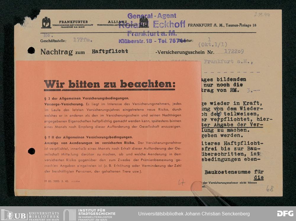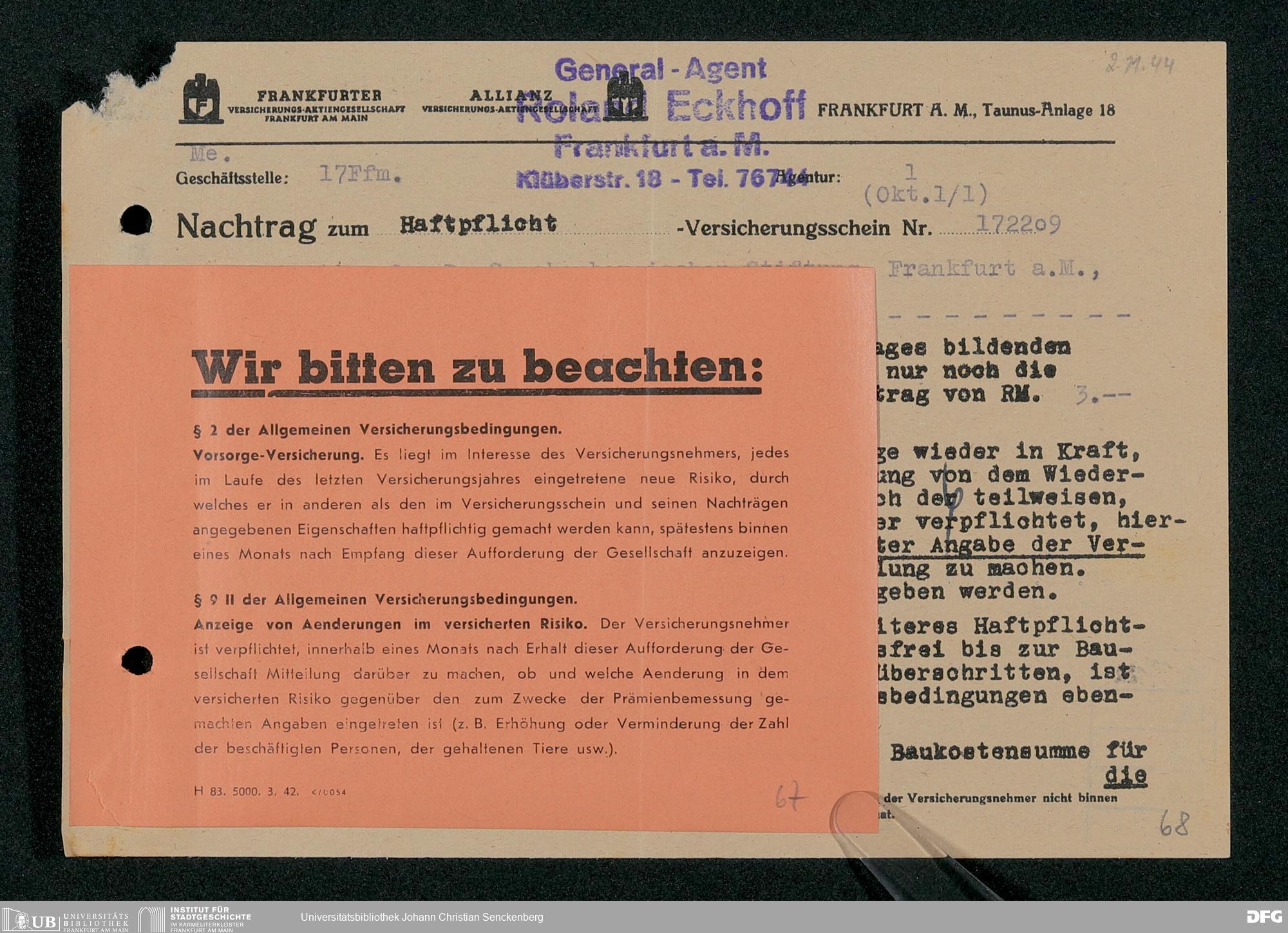 V48 Dr. Senckenbergische Stiftung, 331 - Versicherung der Gemäldesammlung