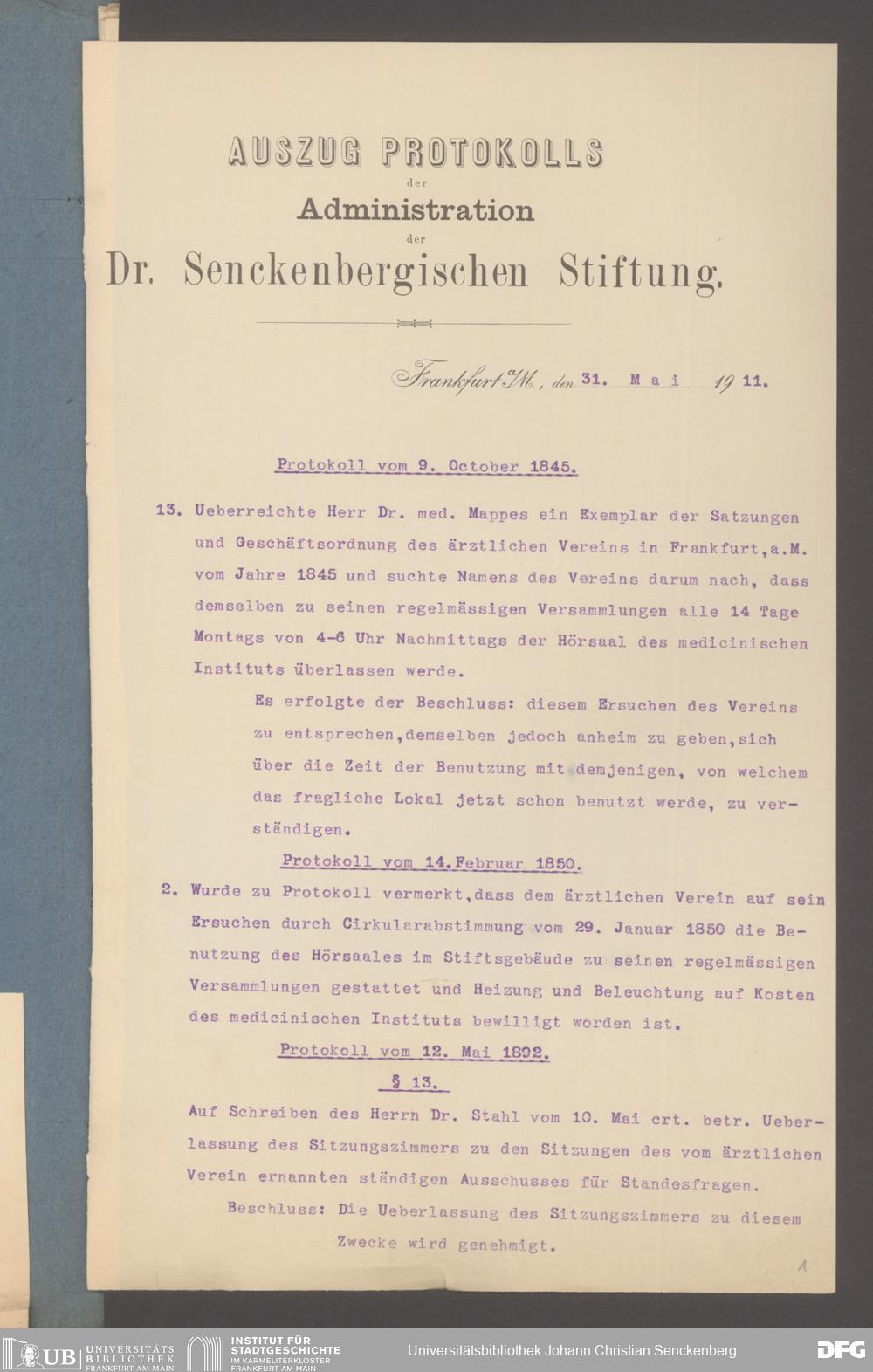 V48 Dr. Senckenbergische Stiftung, 332 - Ärztlicher Verein