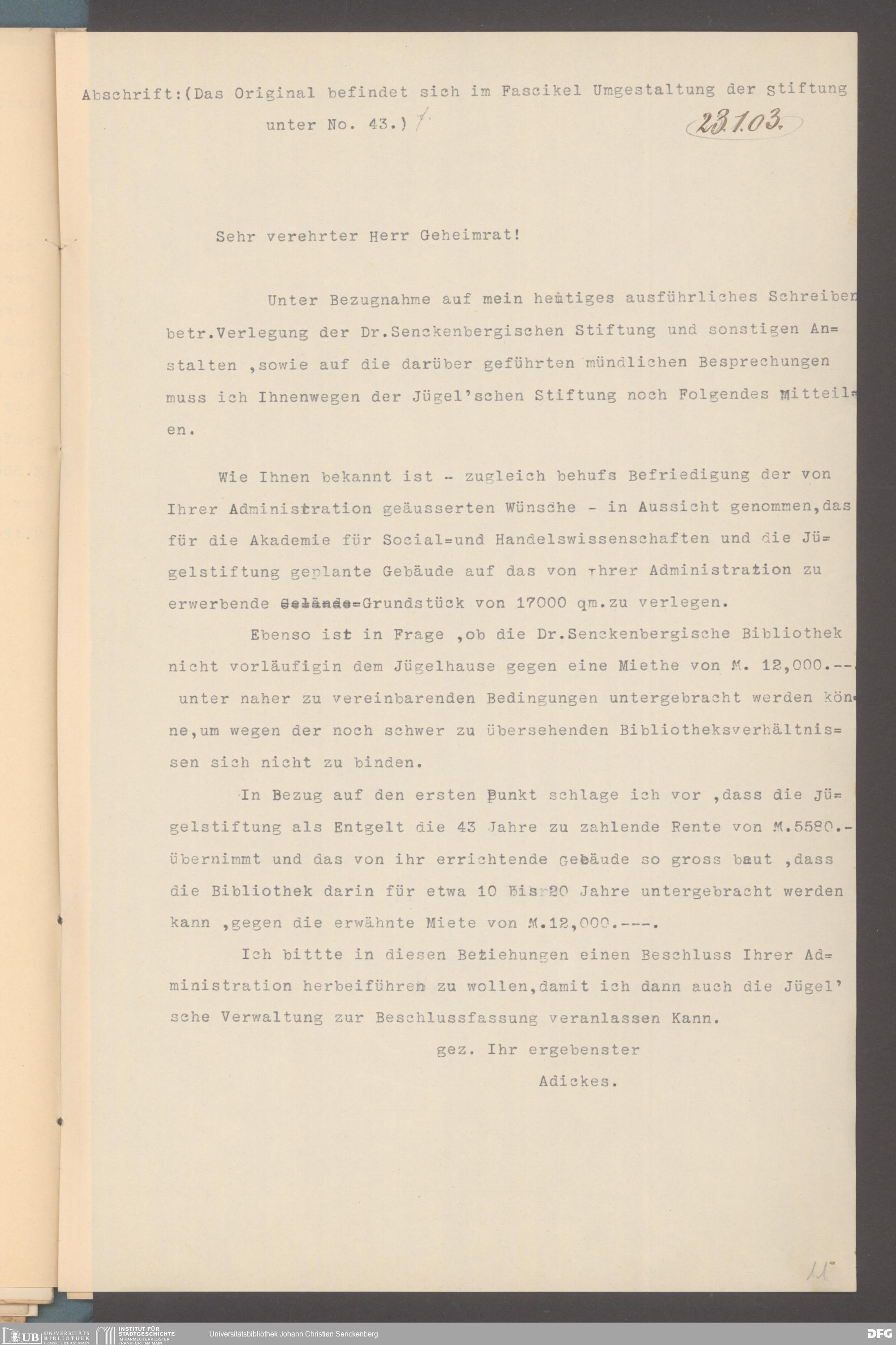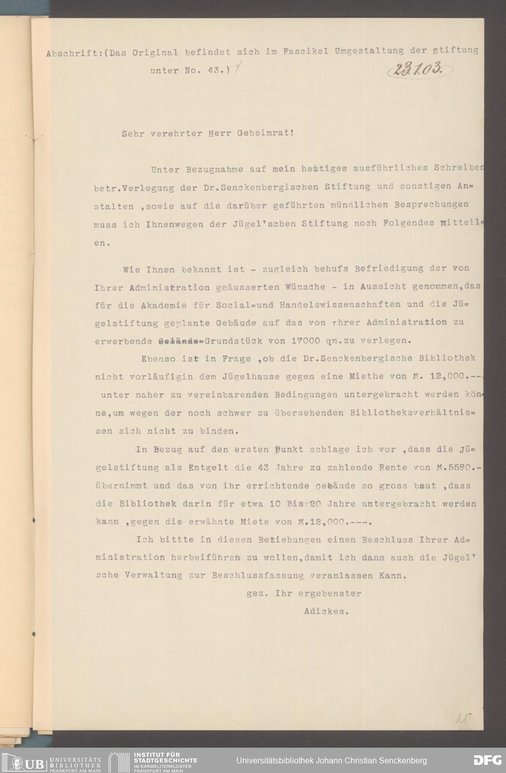 V48 Dr. Senckenbergische Stiftung, 333 - Carl Christian Jügel-Stiftung