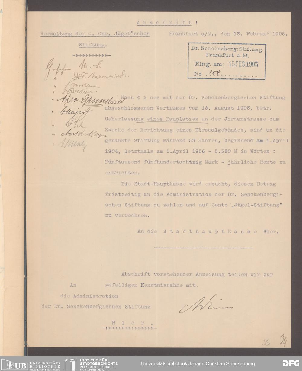 V48 Dr. Senckenbergische Stiftung, 333 - Carl Christian Jügel-Stiftung