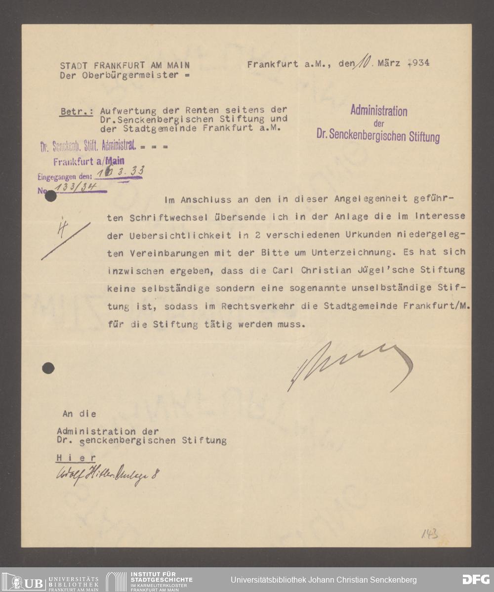V48 Dr. Senckenbergische Stiftung, 333 - Carl Christian Jügel-Stiftung